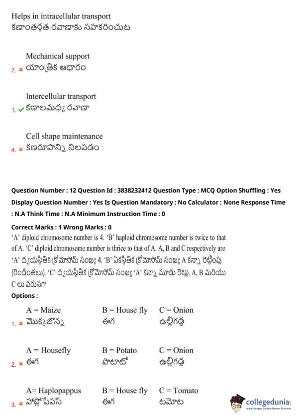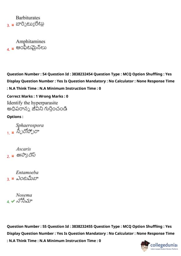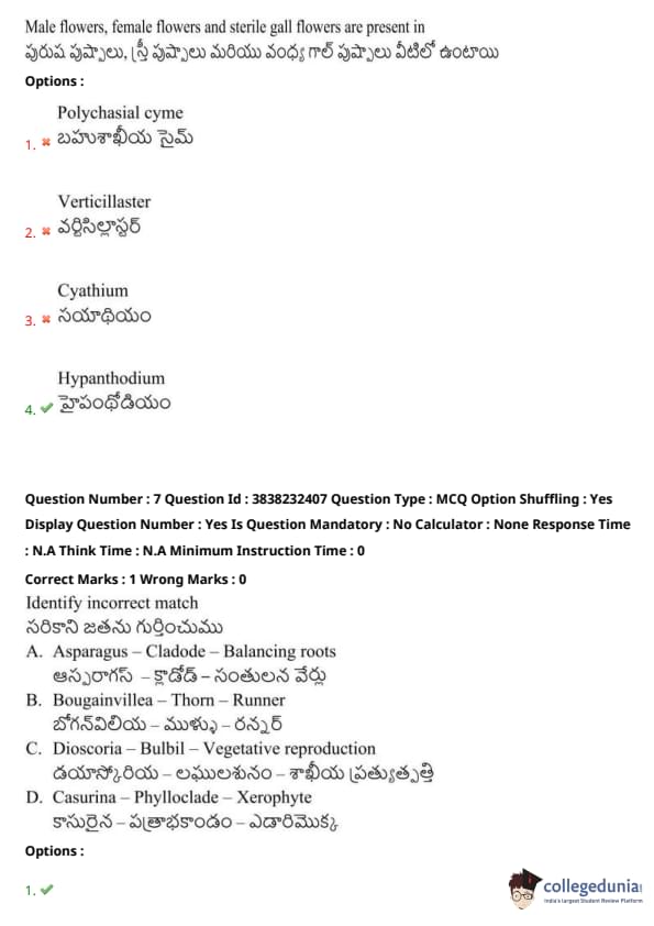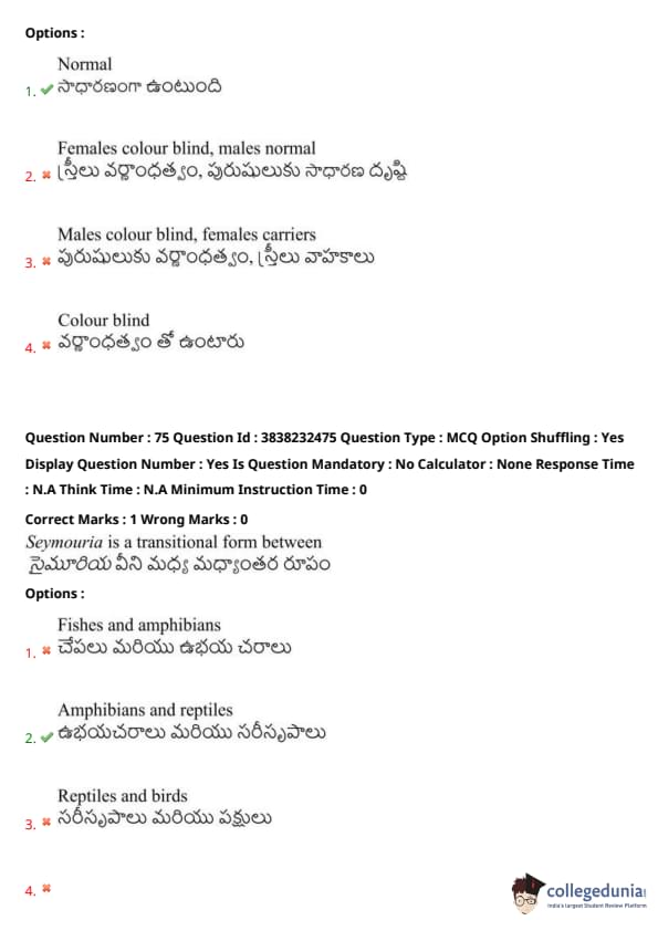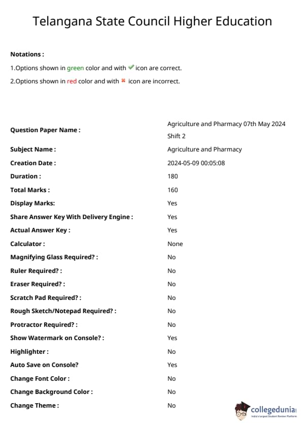TS EAMCET 2024 Question Paper May 7 Shift 2 with Answer Key PDF is available here for download. JNTU, Hyderabad on behalf of TSCHE conducted TS EAMCET on May 7 from 3 PM to 6 PM. TS EAMCET 2024 Question Paper consists of 160 questions carrying 1 mark each. TS EAMCET 2024 Question Paper May 7 Shift 2 PDF for BiPC includes four subjects, Physics, Chemistry and Biology with Botany & Zoology. Each subject includes 40 questions.