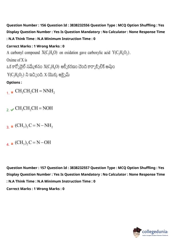 A carbonyl compound \( X(C_3H_6O) \) on oxidation gave carboxylic acid \( Y(C_3H_6O_2) \). The oxime of \( X \) is: