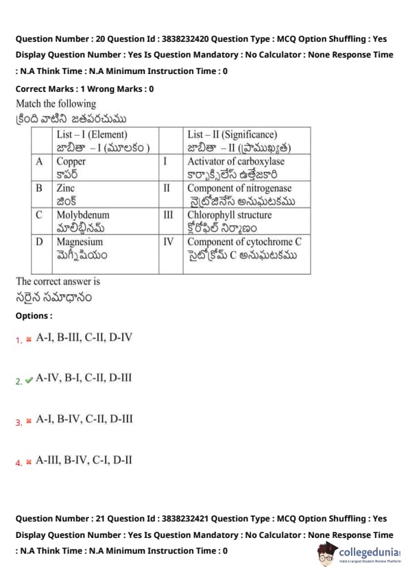 | TS EAMCET 2021 Question Paper | TS EAMCET 2020 Question Paper |