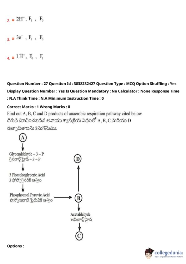Find out A, B, C, and D products of anaerobic respiration pathway cited below