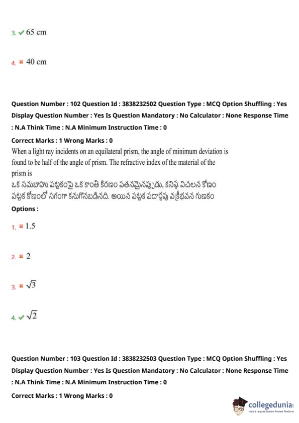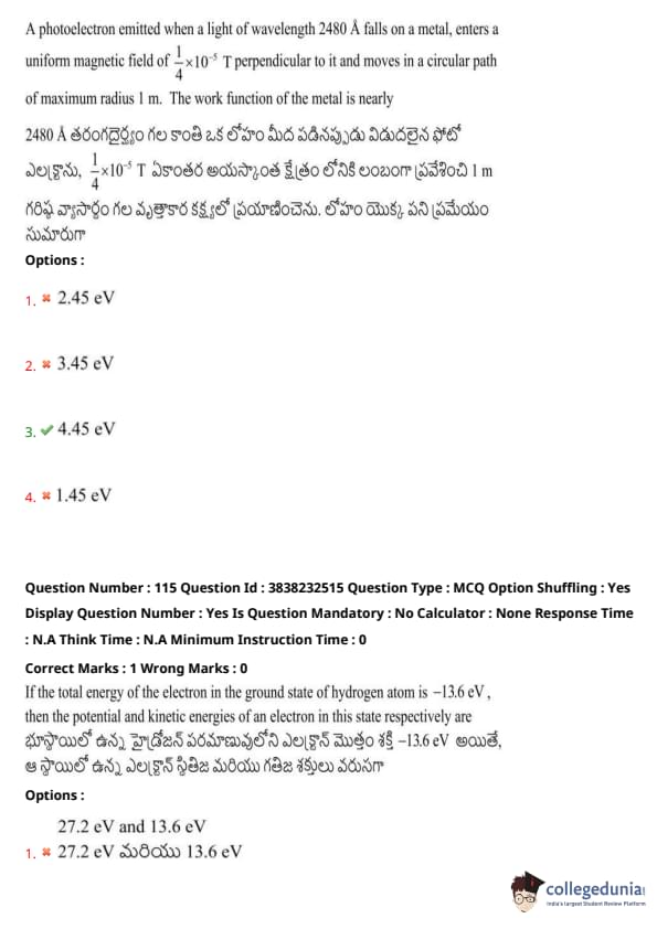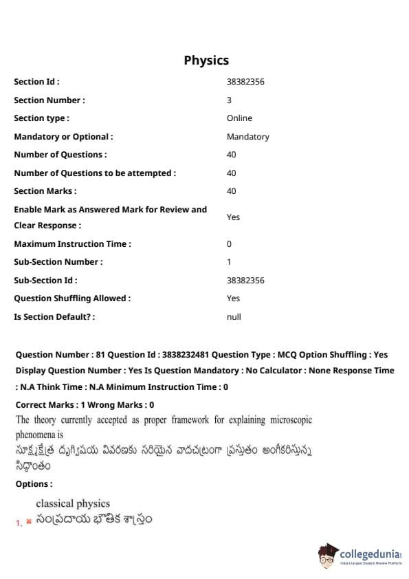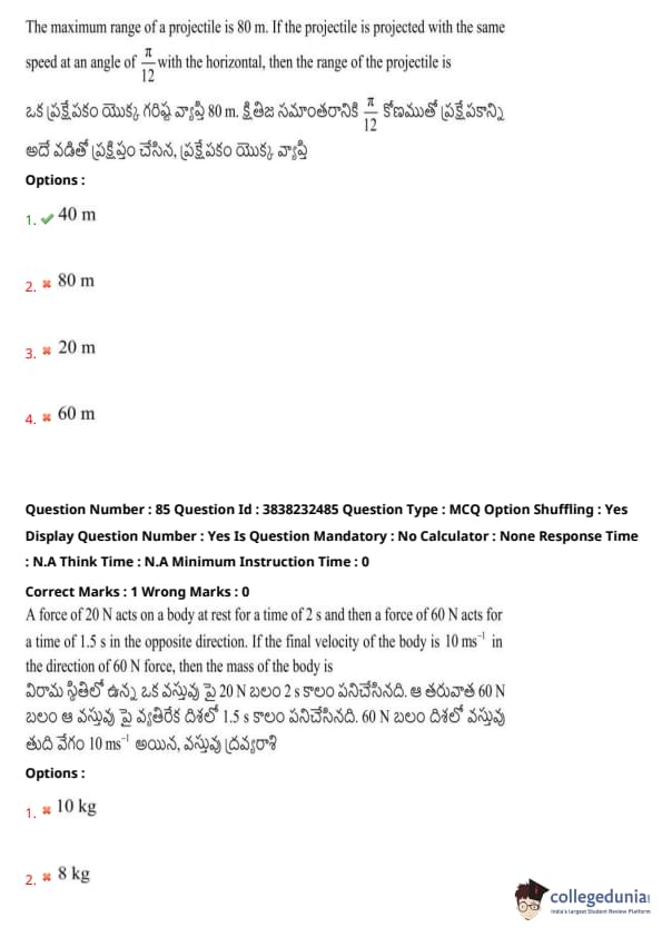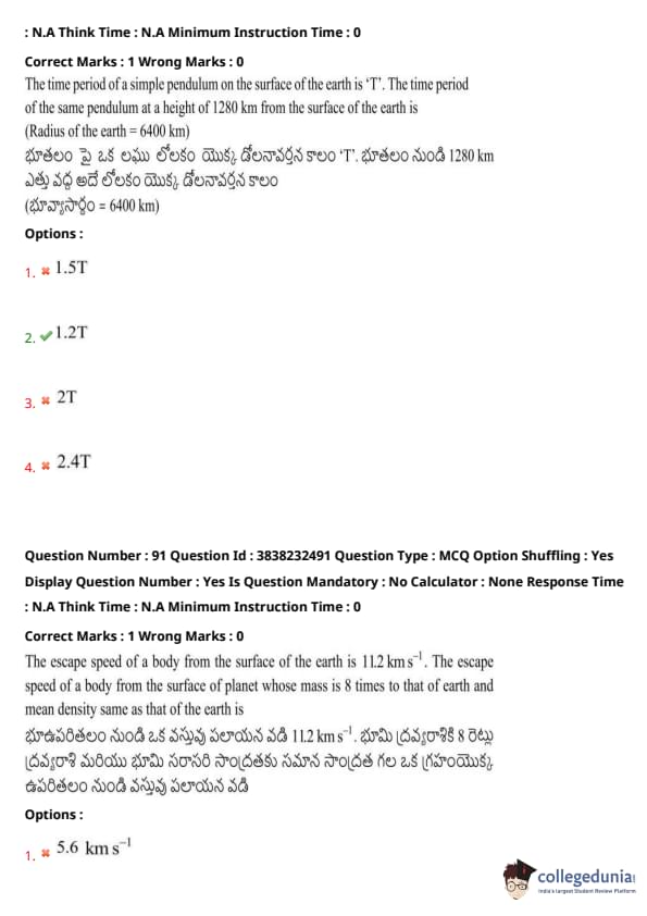 | TS EAMCET 2024 Question Paper with Answer Key | Check Solution |