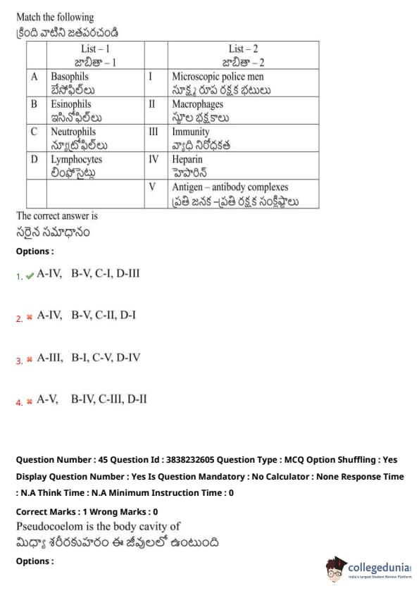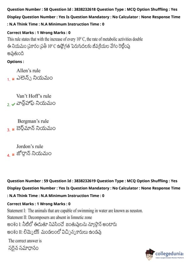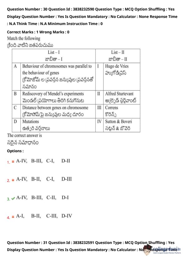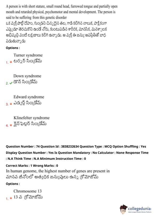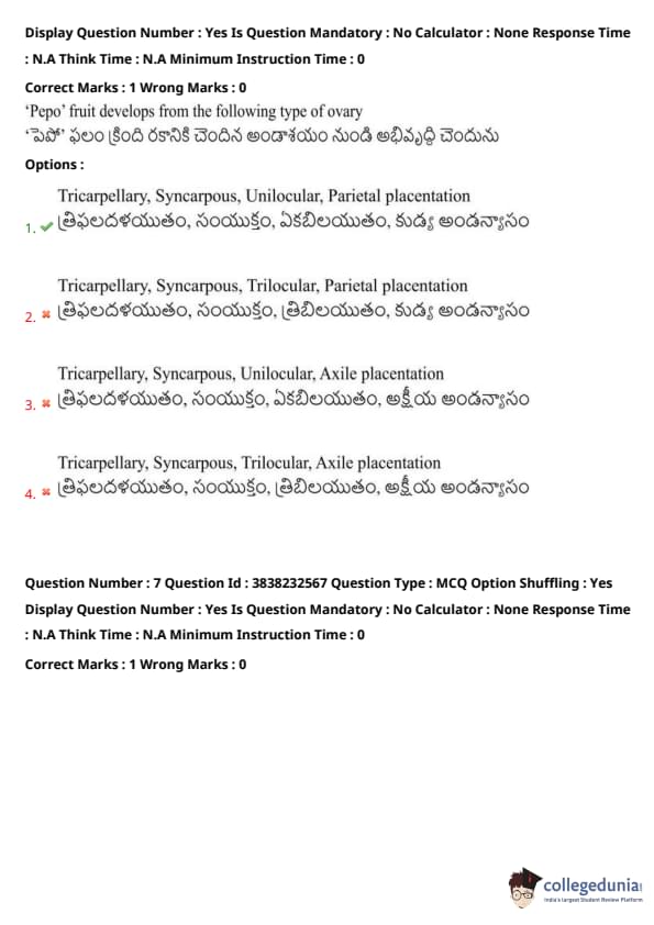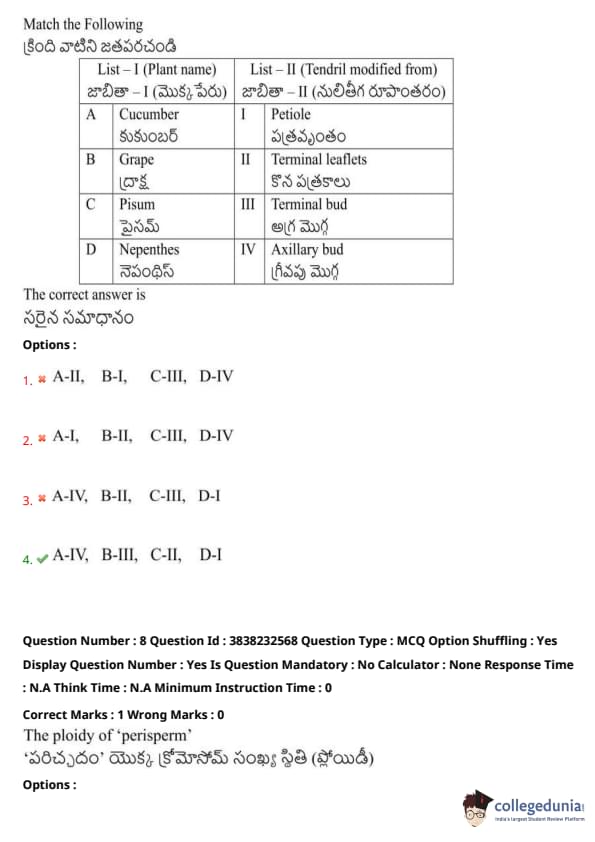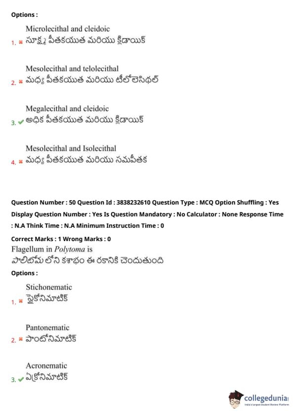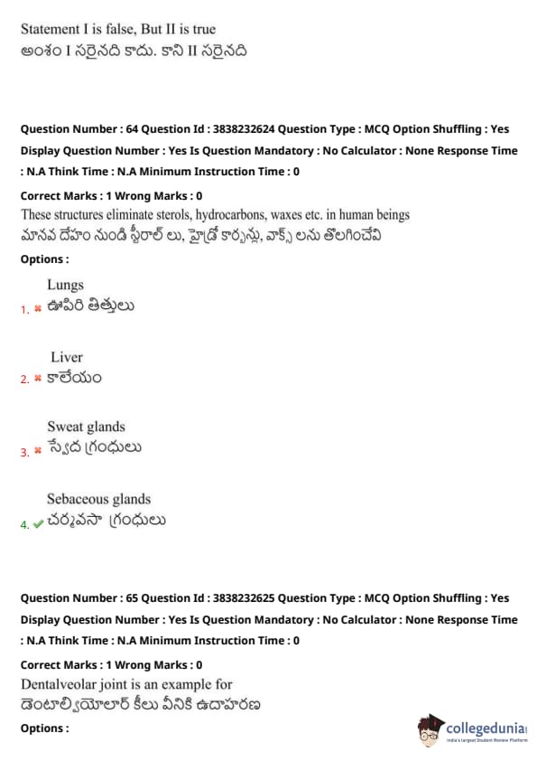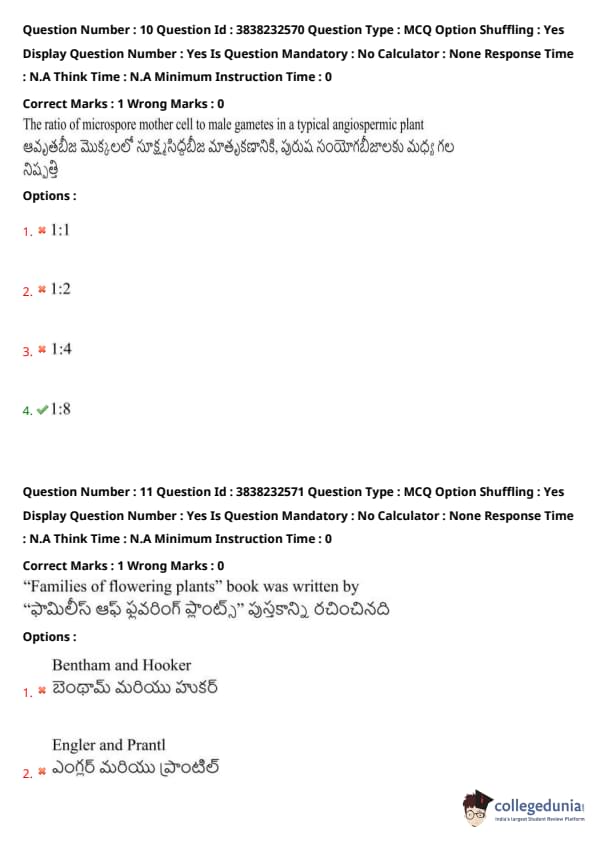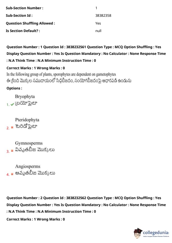 TS EAMCET 2024 Question Paper May 8 Shift 1 with Answer Key PDF is available here for download. JNTU, Hyderabad on behalf of TSCHE conducted TS EAMCET on May 8 from 9 AM to 12 PM. TS EAMCET 2024 Question Paper consists of 160 questions carrying 1 mark each. TS EAMCET 2024 Question Paper May 8 Shift 1 PDF for BiPC includes four subjects, Physics, Chemistry and Biology with Botany & Zoology. Each subject includes 40 questions.