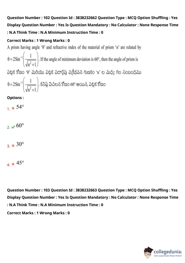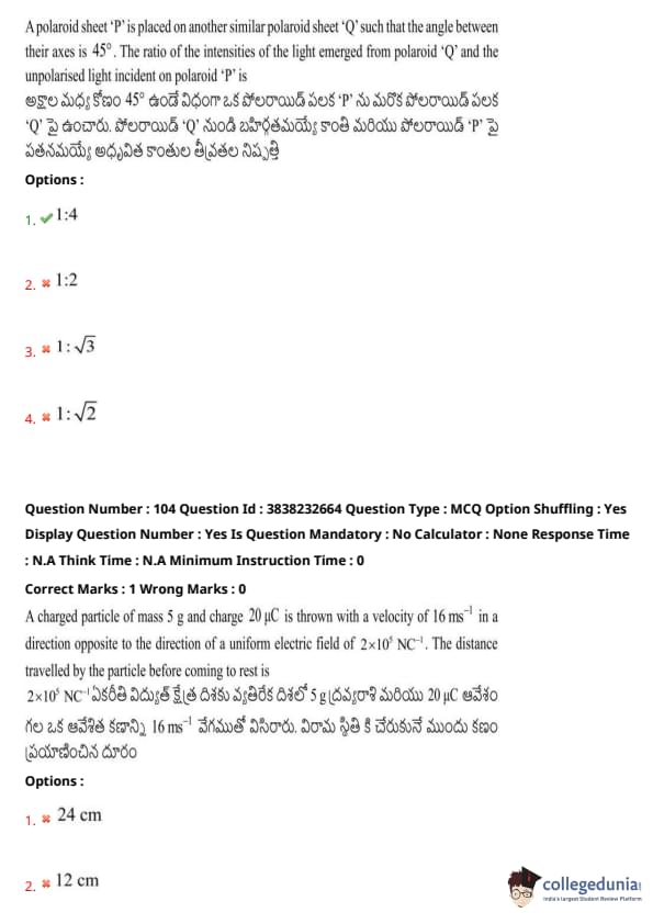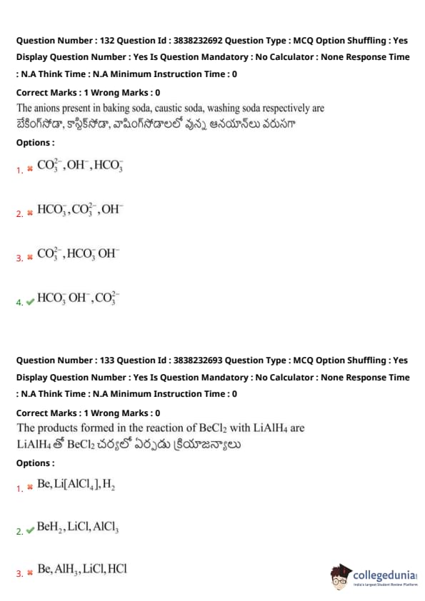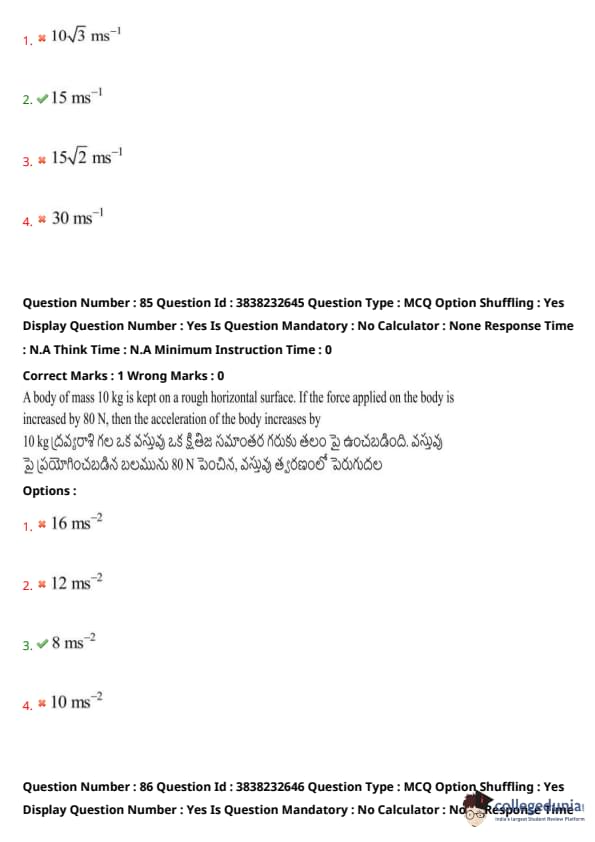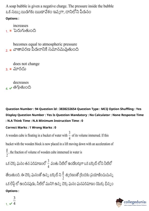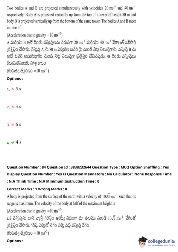 | TS EAMCET 2024 Question Paper with Answer Key | Check Solution |