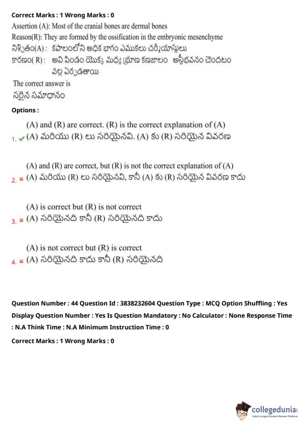 Thus, both (A) and (R) are correct, and (R) is the correct explanation of (A). Quick Tip: Dermal bones are commonly found in the skull, such as in the parietal, frontal, and occipital bones, which develop through intramembranous ossification.