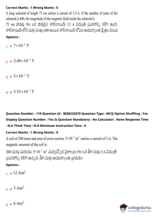 | TS EAMCET 2019 Question Paper | TS EAMCET 2018 Question Paper |