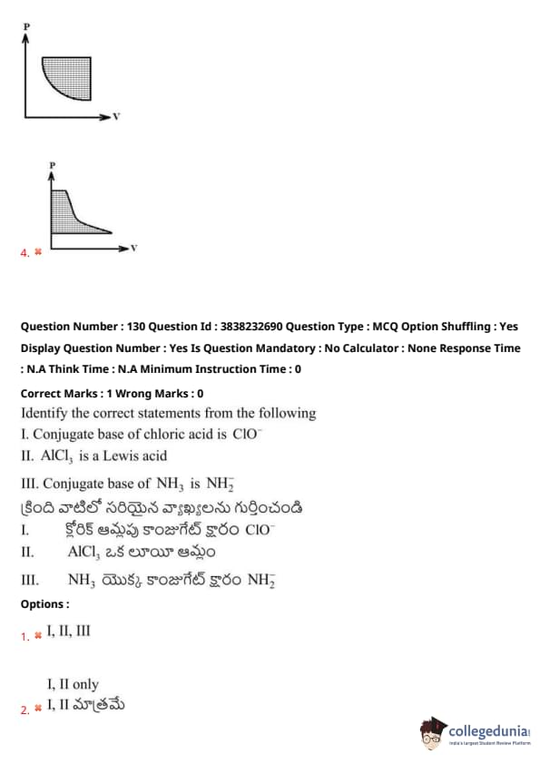 I. Conjugate base of chloric acid is \( ClO^- \)
