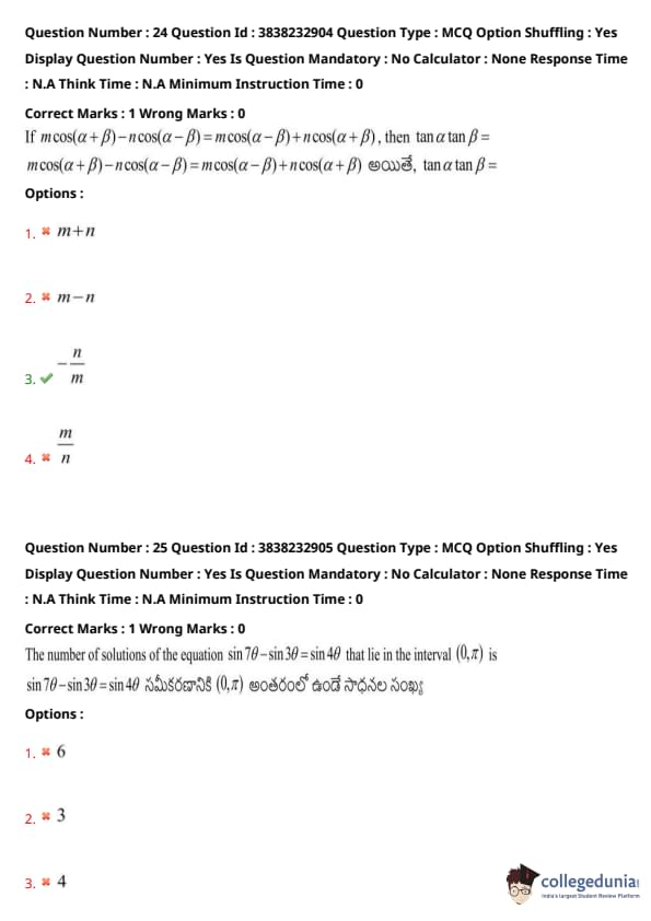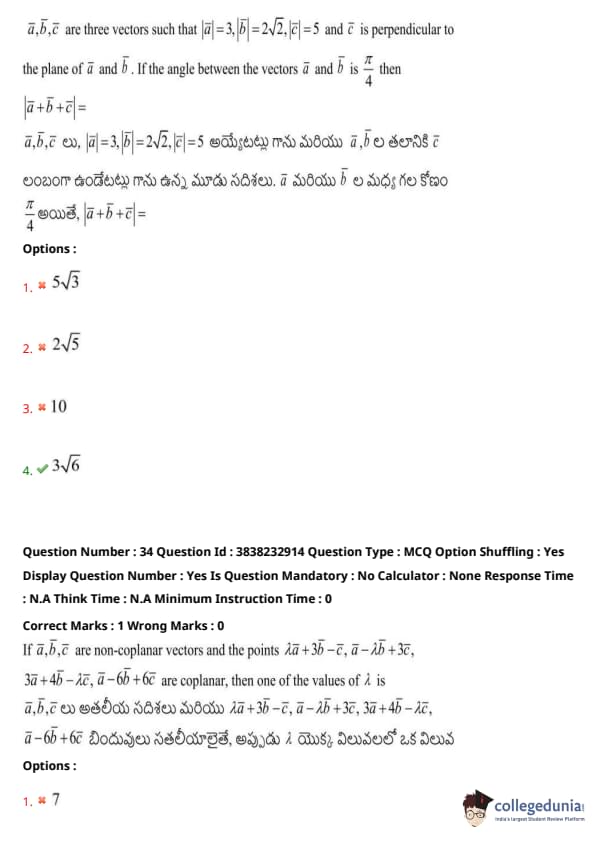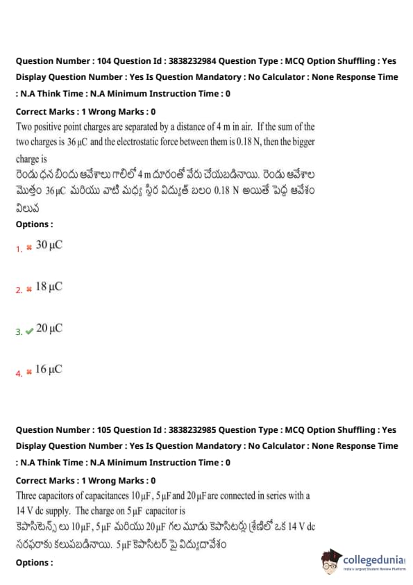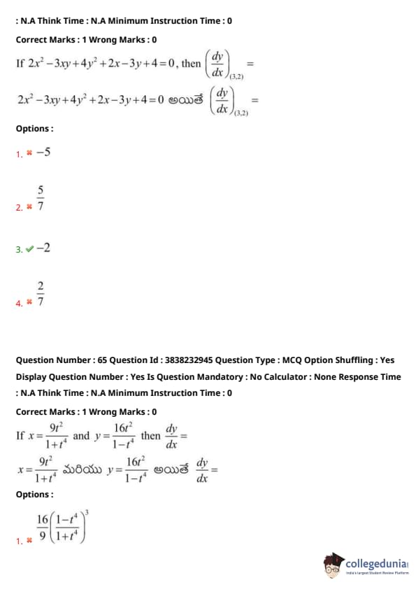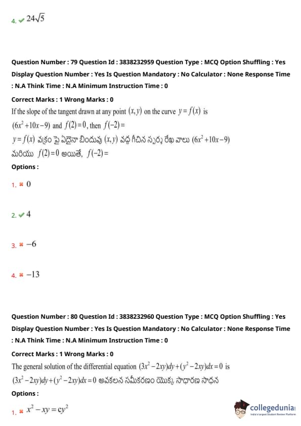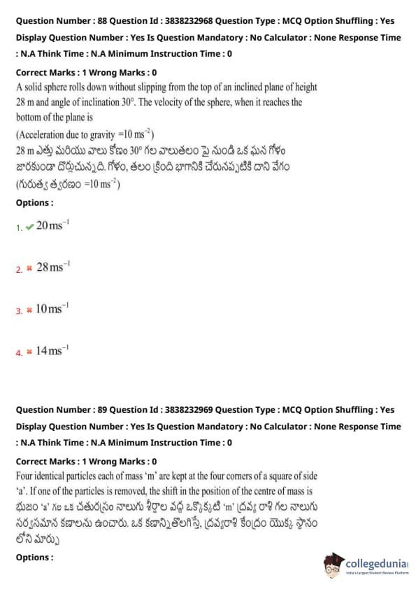 | TS EAMCET 2024 Question Paper with Answer Key | Check Solution |