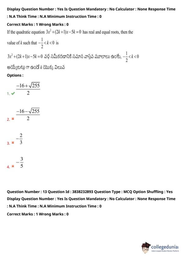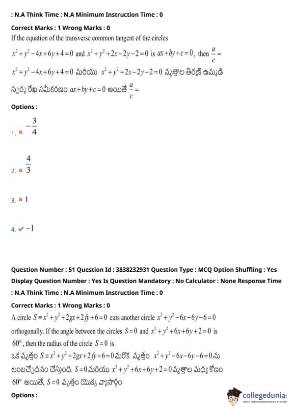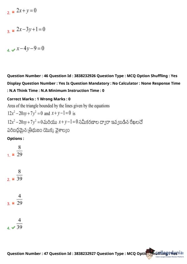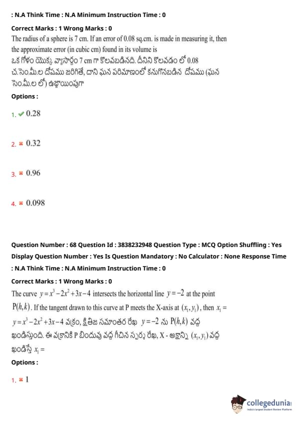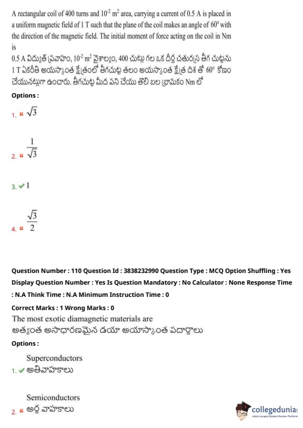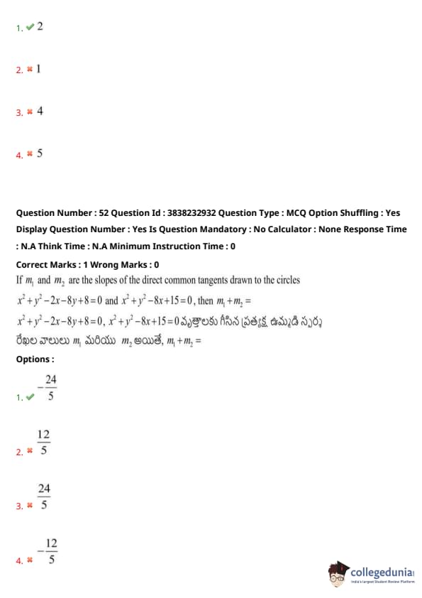 | TS EAMCET 2024 Question Paper with Answer Key | Check Solution |