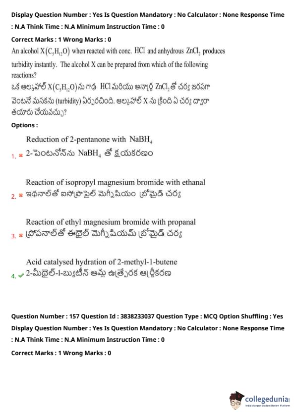 Other options do not form tertiary alcohols. Quick Tip: Tertiary alcohols react instantly with Lucas reagent due to rapid formation of carbocations.