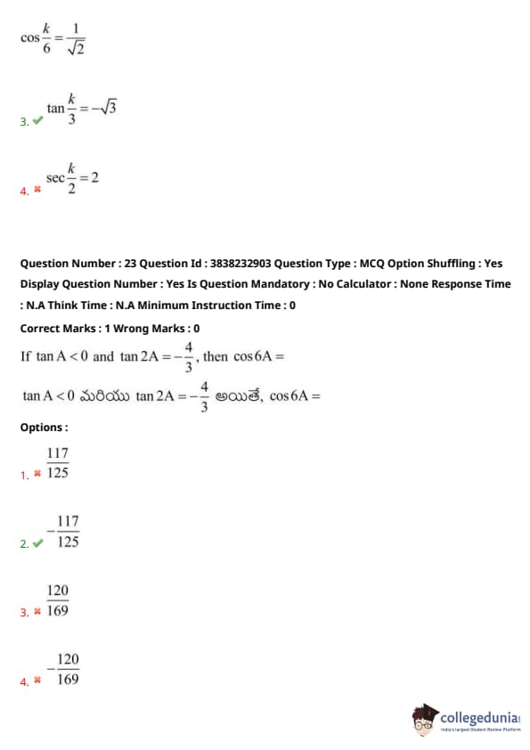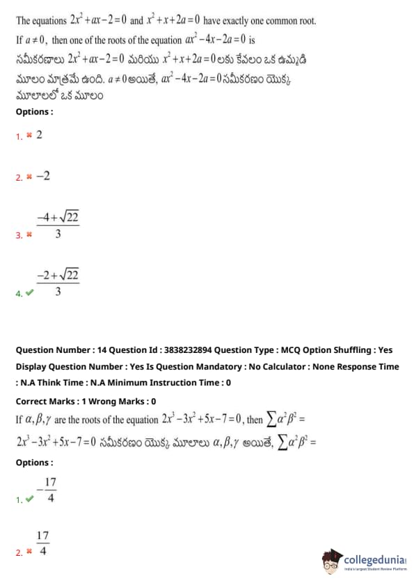 | TS EAMCET 2023 Question Paper | TS EAMCET 2022 Question Paper |