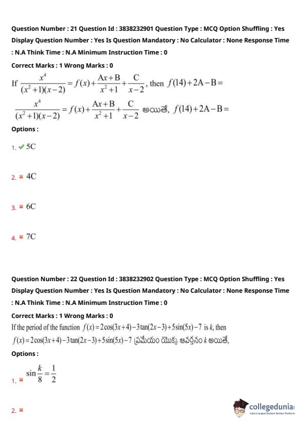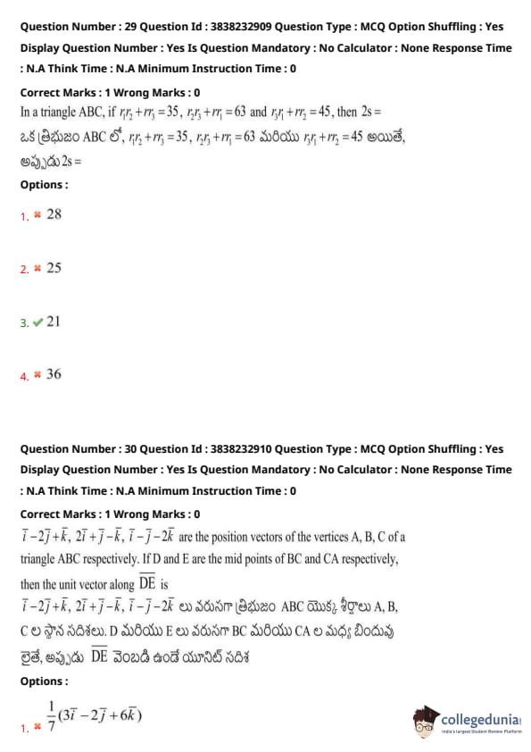 | TS EAMCET 2021 Question Paper | TS EAMCET 2020 Question Paper |