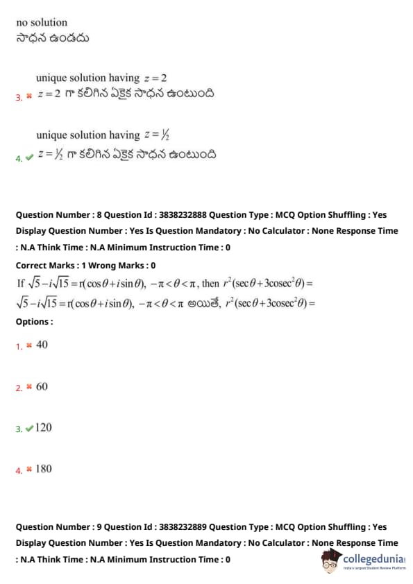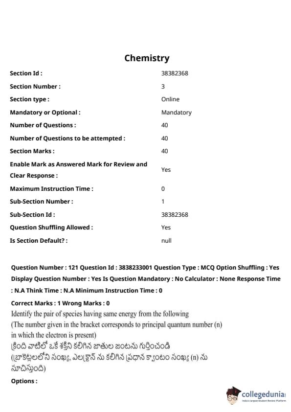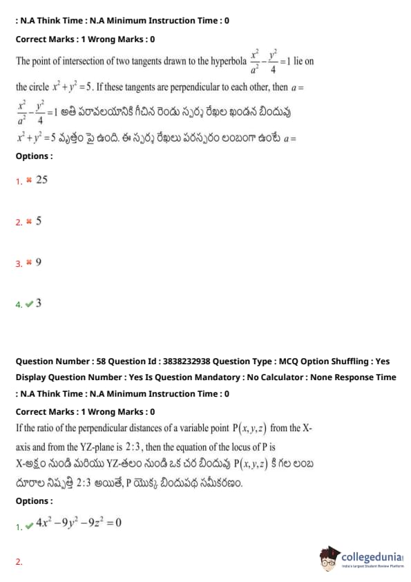 TS EAMCET 2024 Question Paper May 9 Shift 1 with Answer Key PDF will be available here for download. JNTU, Hyderabad on behalf of TSCHE is going to conduct TS EAMCET on May 9 from 9 AM to 12 PM. TS EAMCET 2024 Question Paper consists of 160 questions carrying 1 mark each. TS EAMCET 2024 Question Paper May 9 Shift 1 PDF for MPC includes three subjects, Physics, Chemistry and Mathematics. The Physics and Chemistry section of the paper includes 40 questions each while the Mathematics section includes a total of 80 questions.