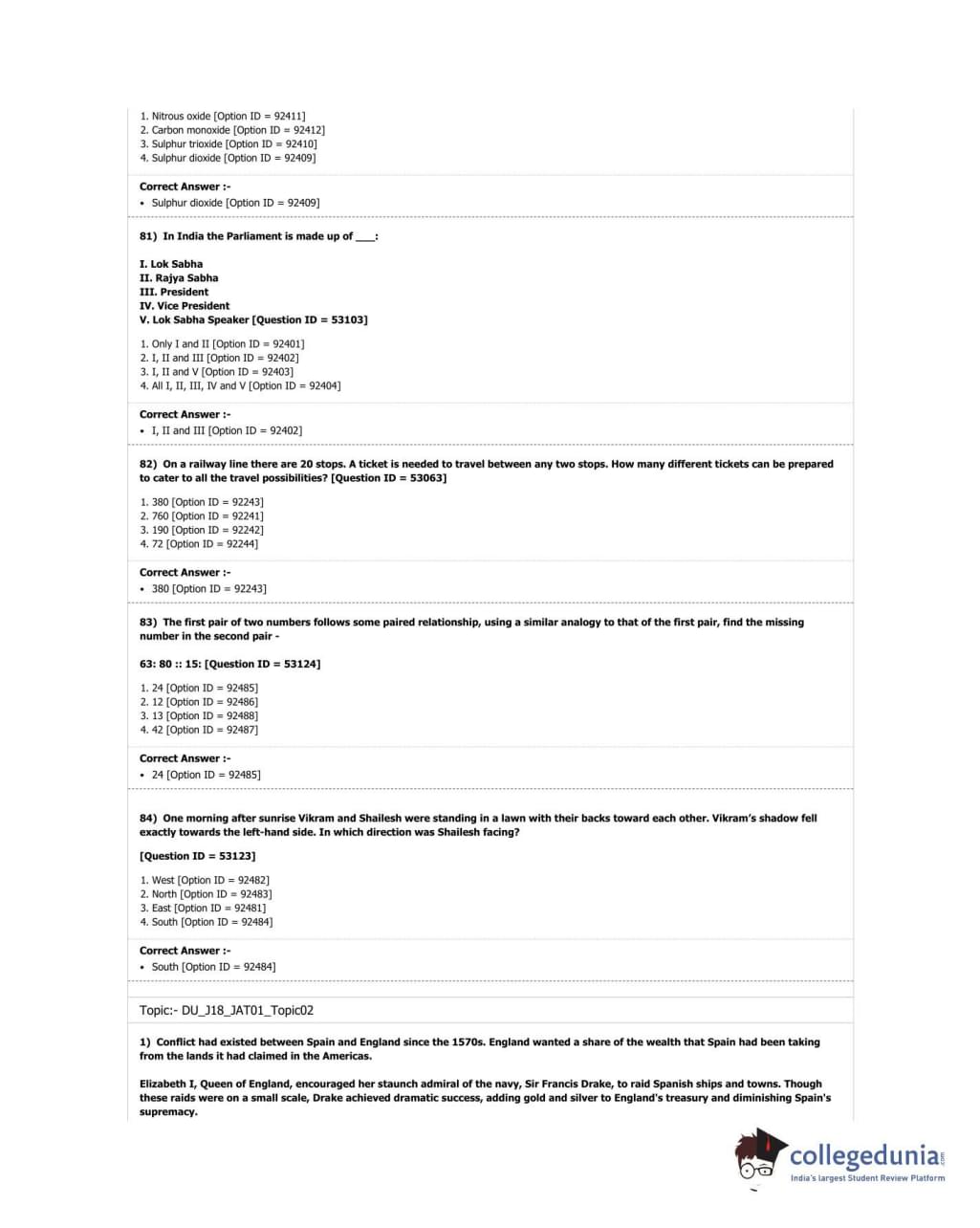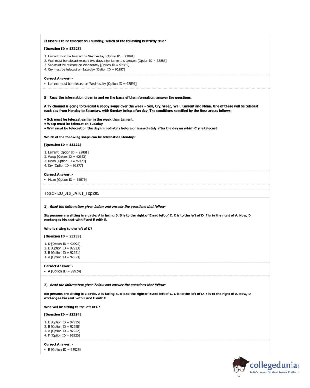 | DU JAT 2018 JAT BMS/BBA (FIA) & B.A. (Hons.) Business Economics Question Paper PDF | DU JAT 2018 JAT BMS/BBA (FIA) & B.A. (Hons.) Business Economics Answer Key PDF |