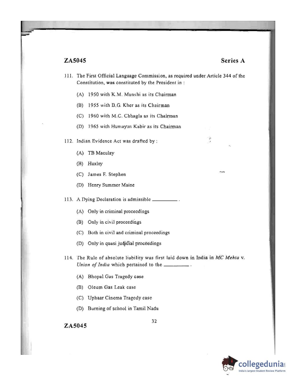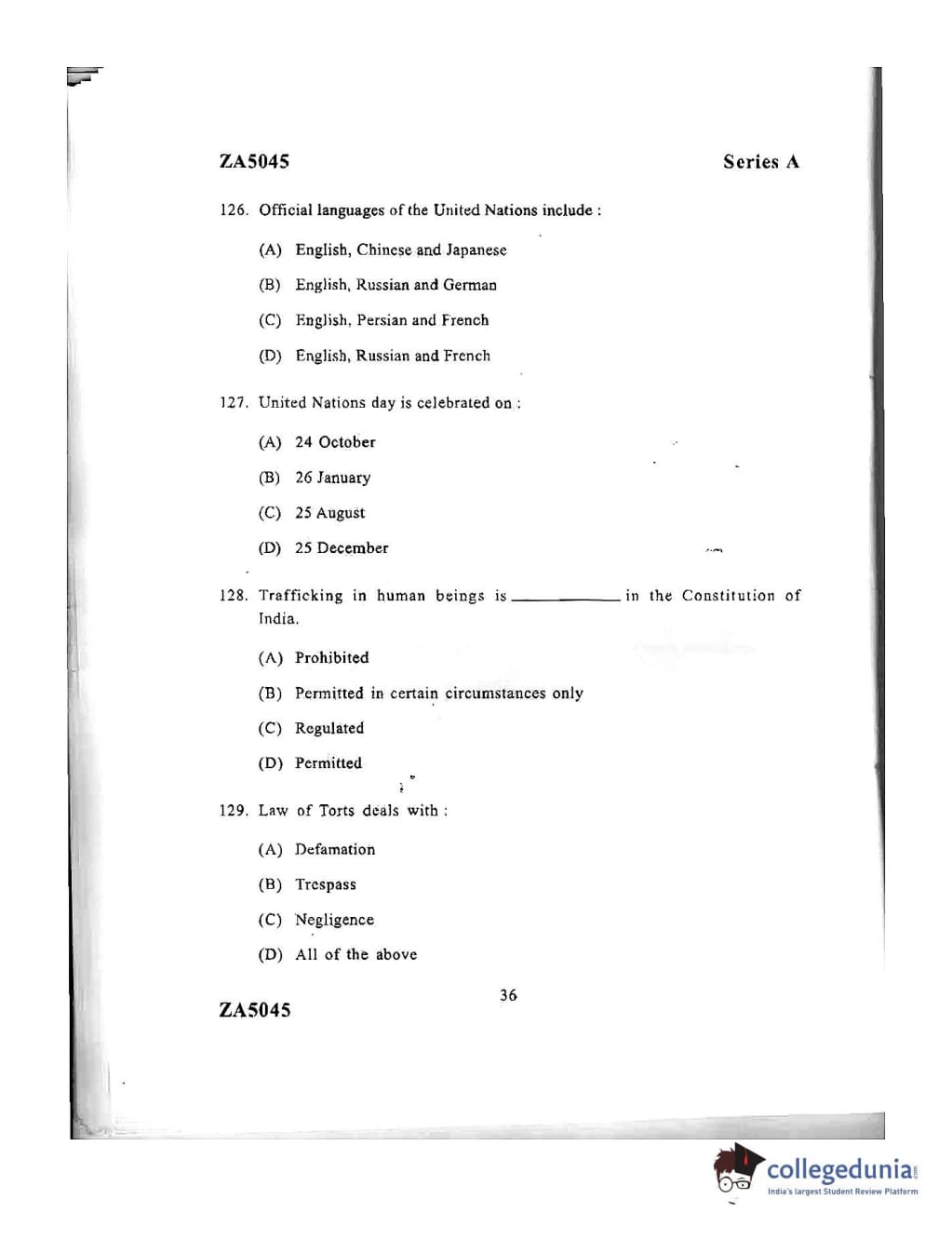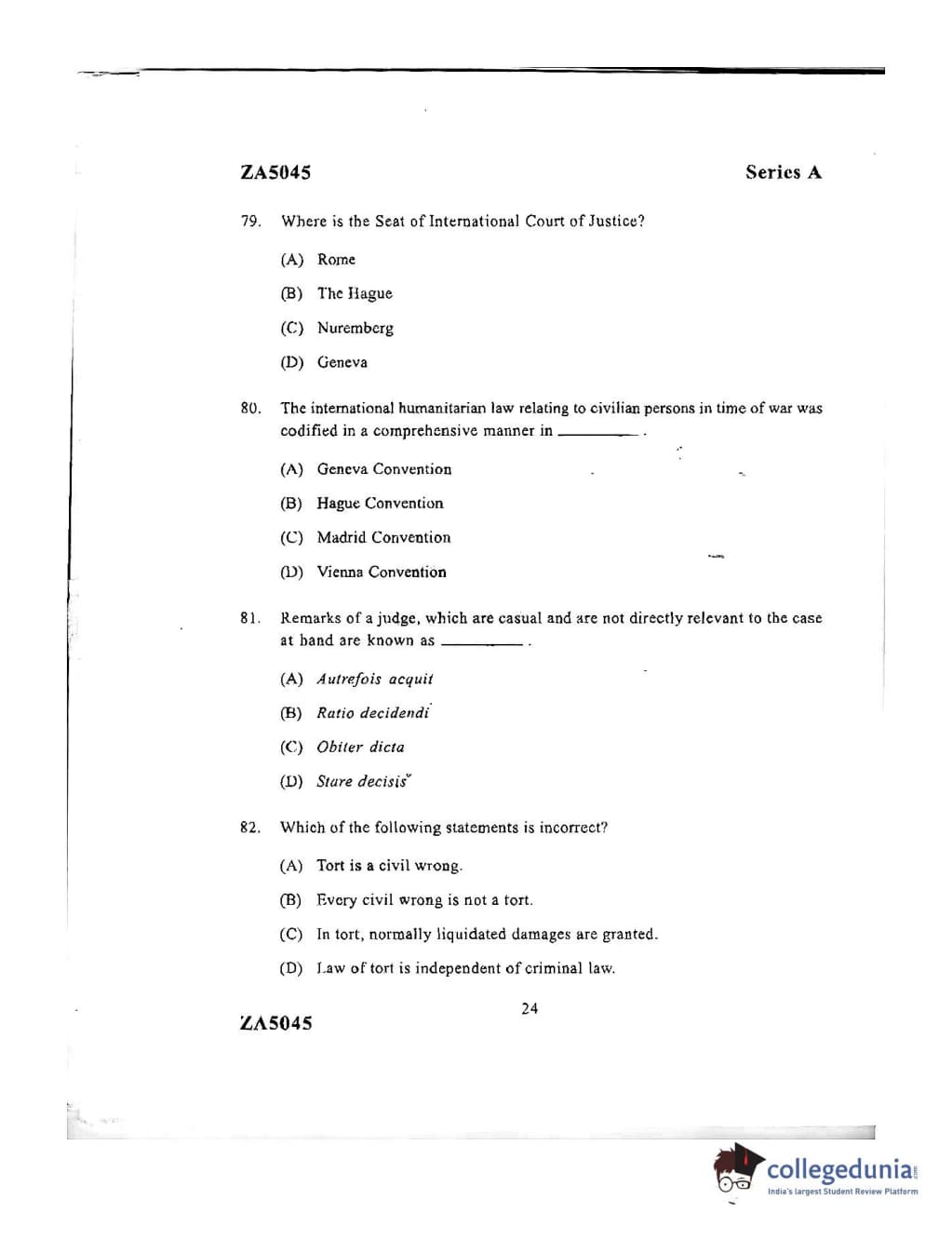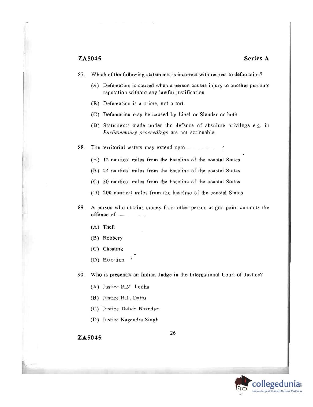 DU LLB 2016 Question Paper with Answer Key PDFs Afternoon Session