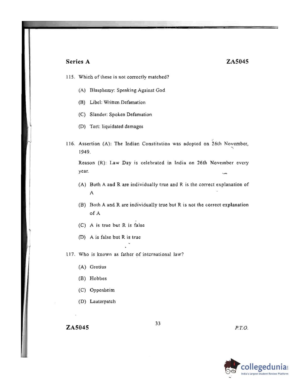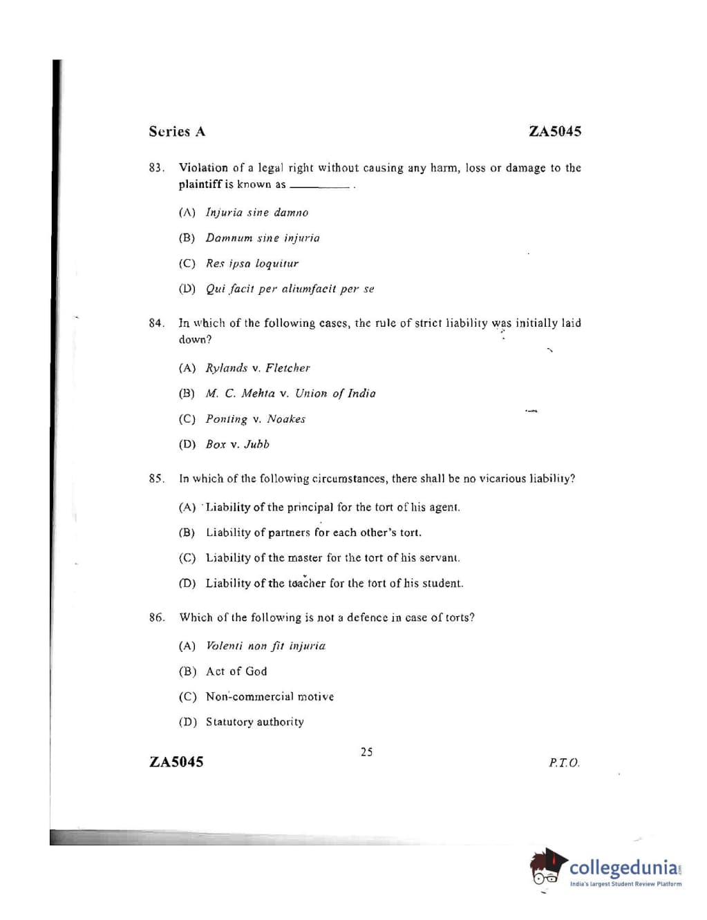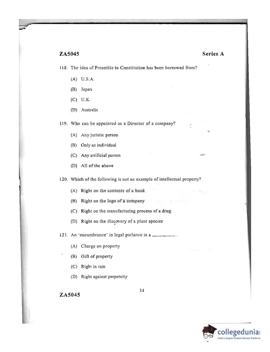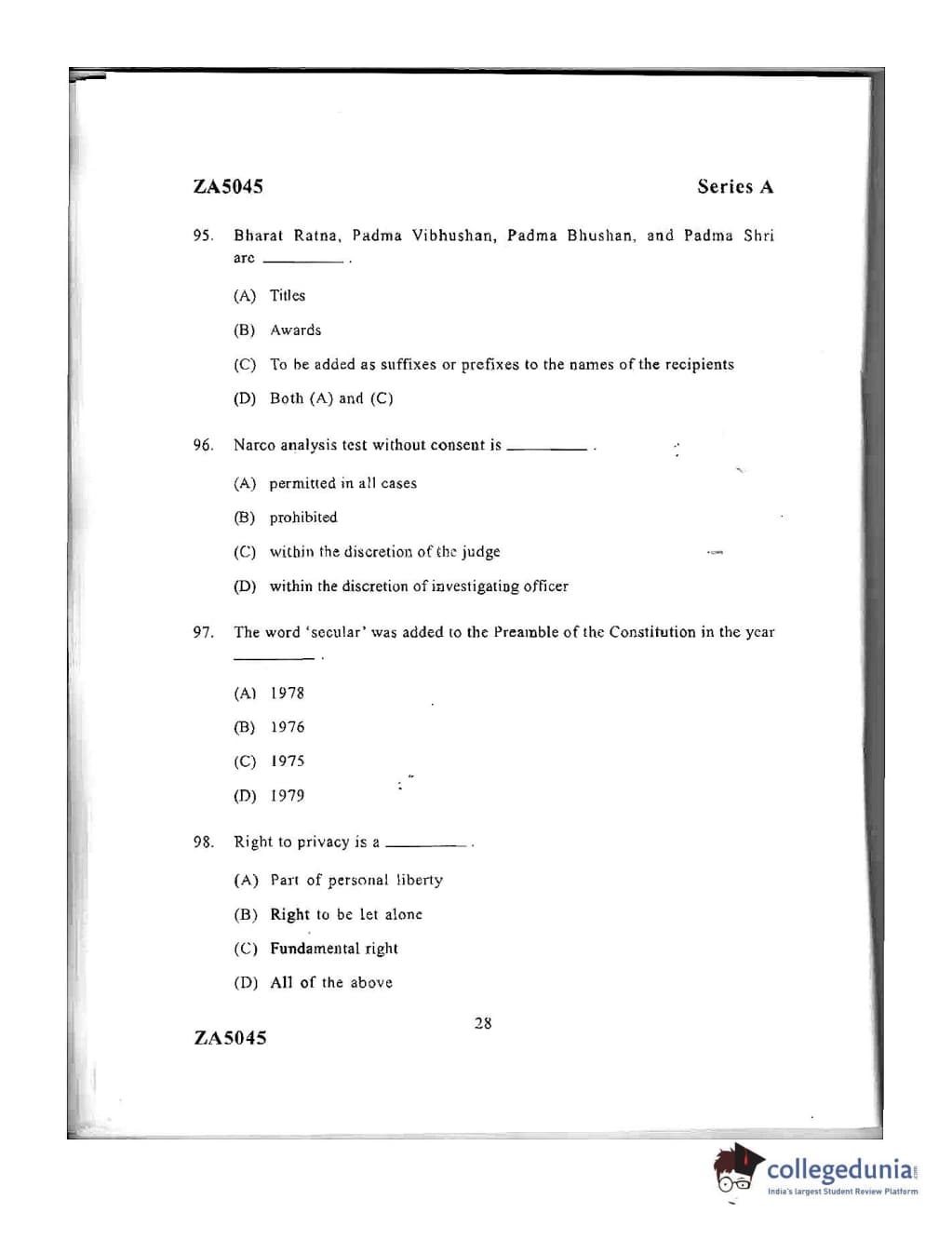 DU LLB 2016 Question Paper with Answer Key PDFs Afternoon Session
