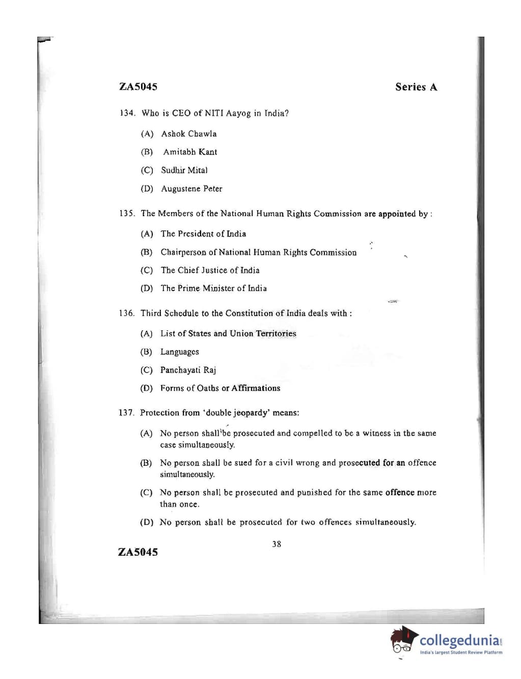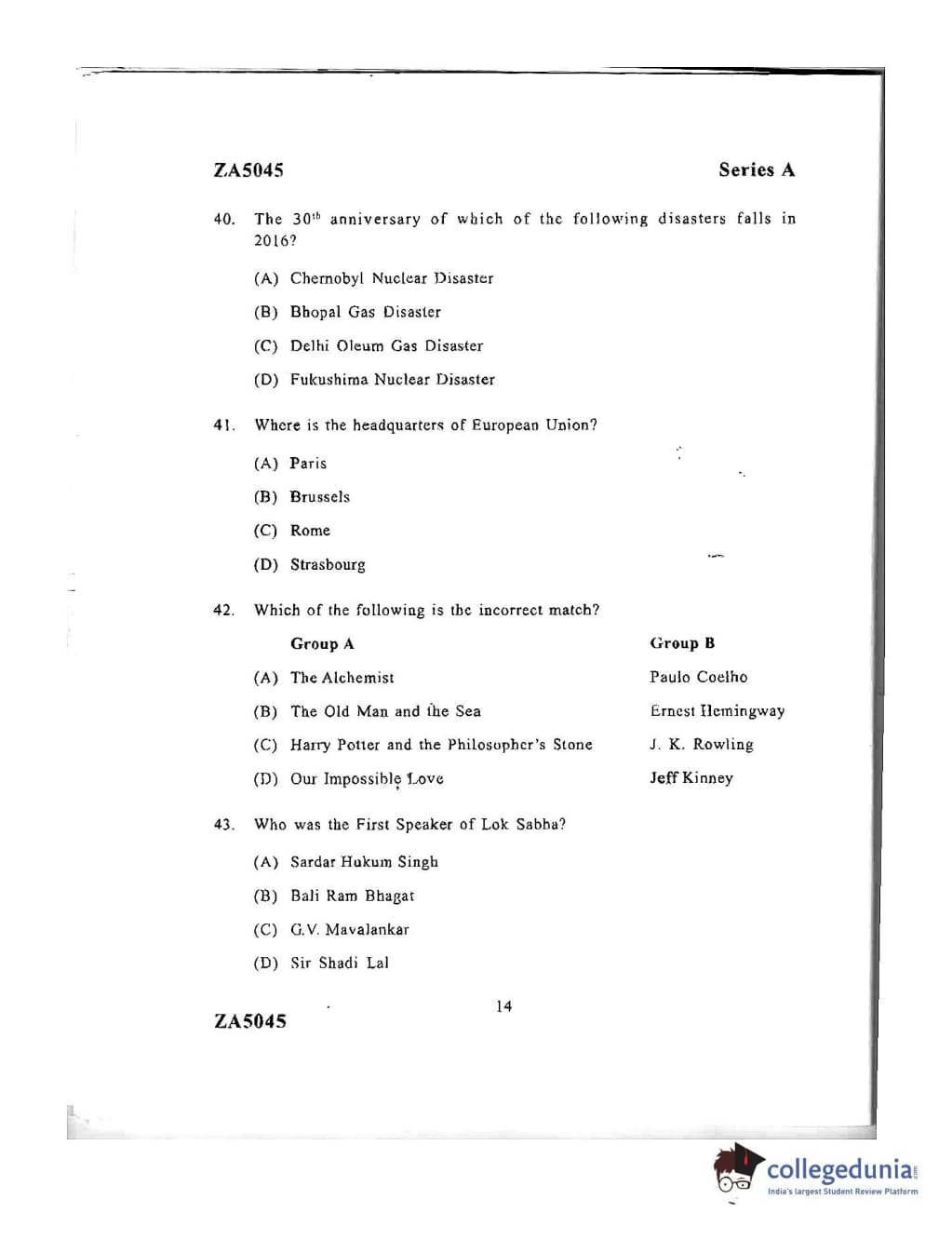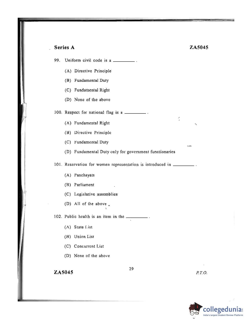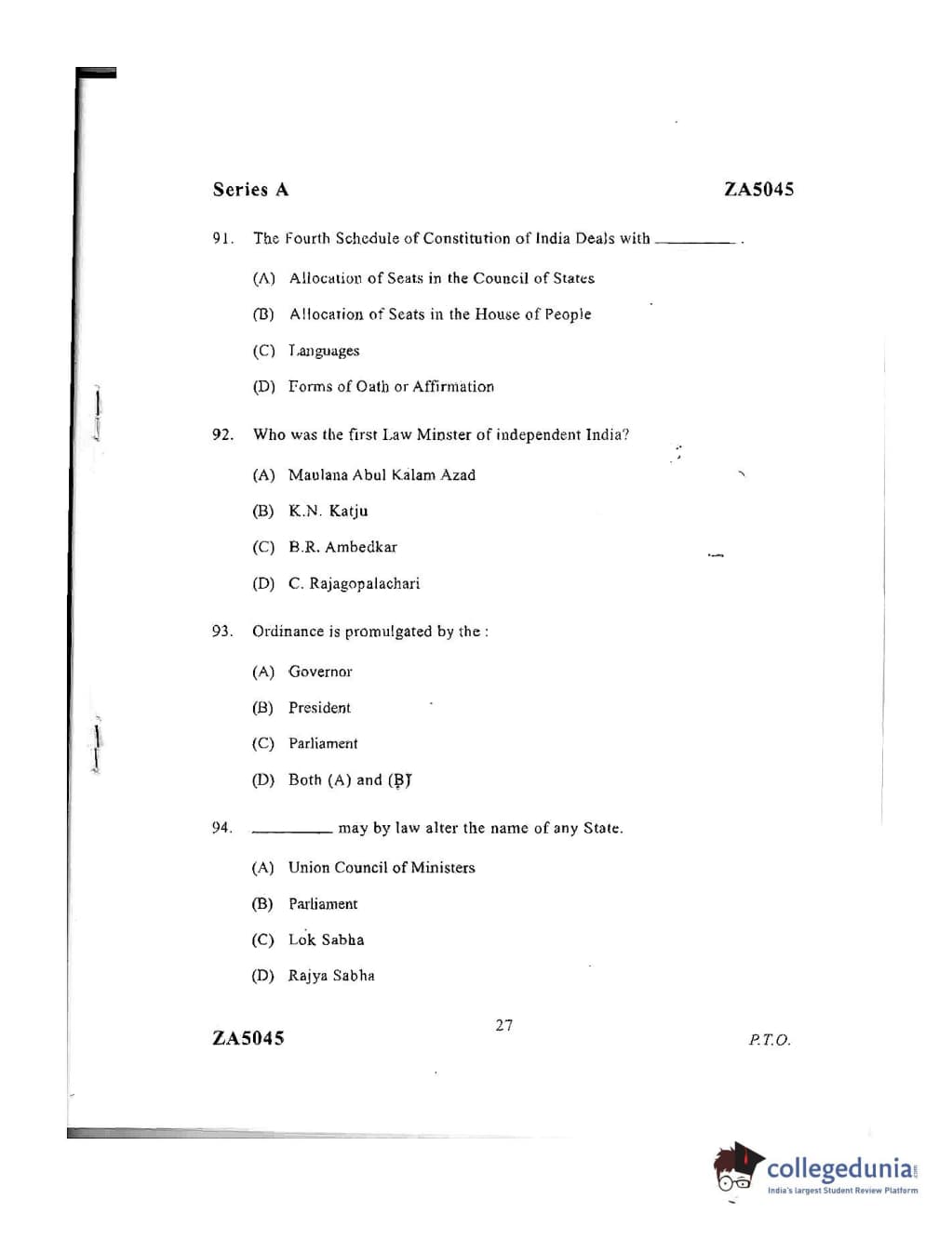 DU LLB 2016 Question Paper with Answer Key PDFs Afternoon Session