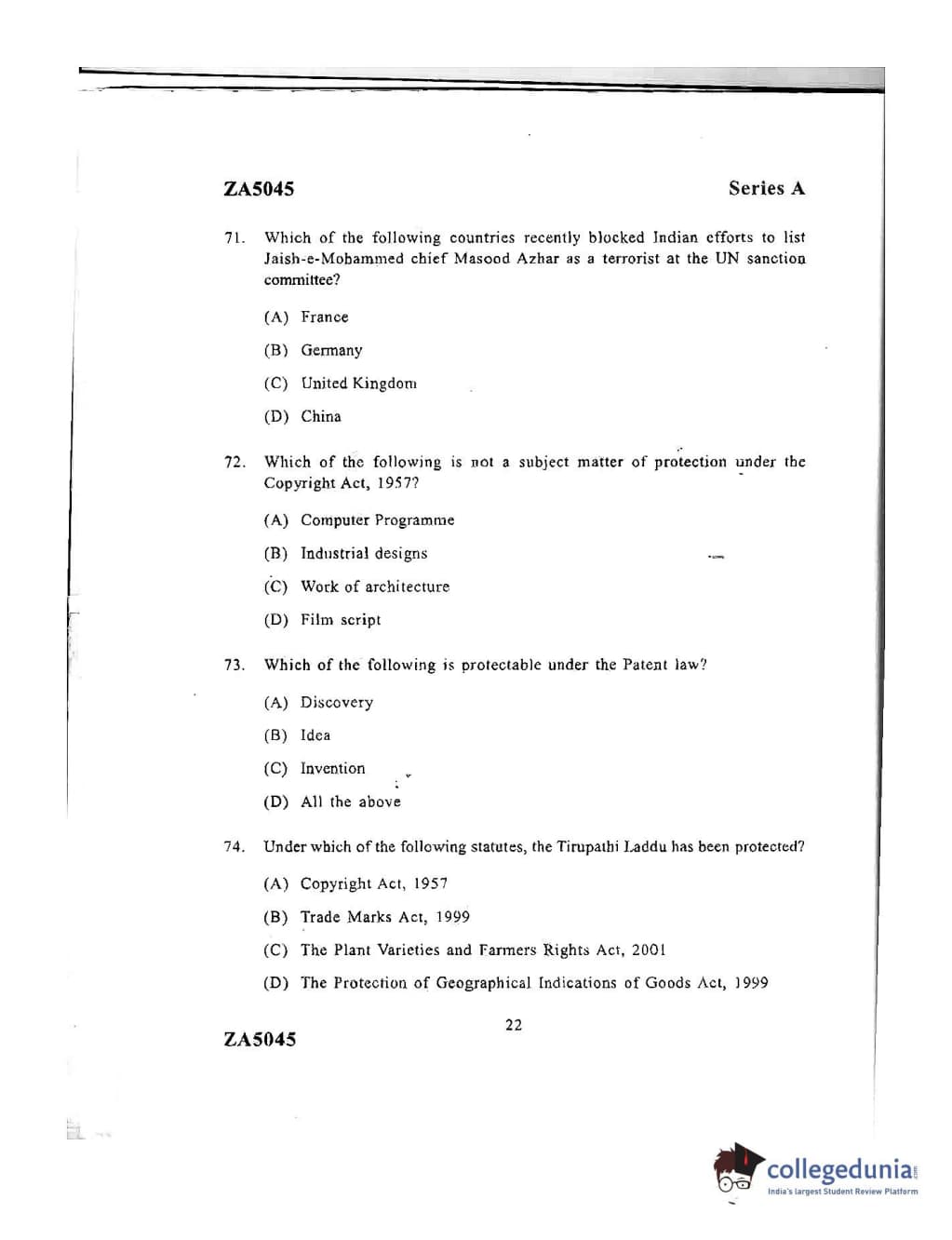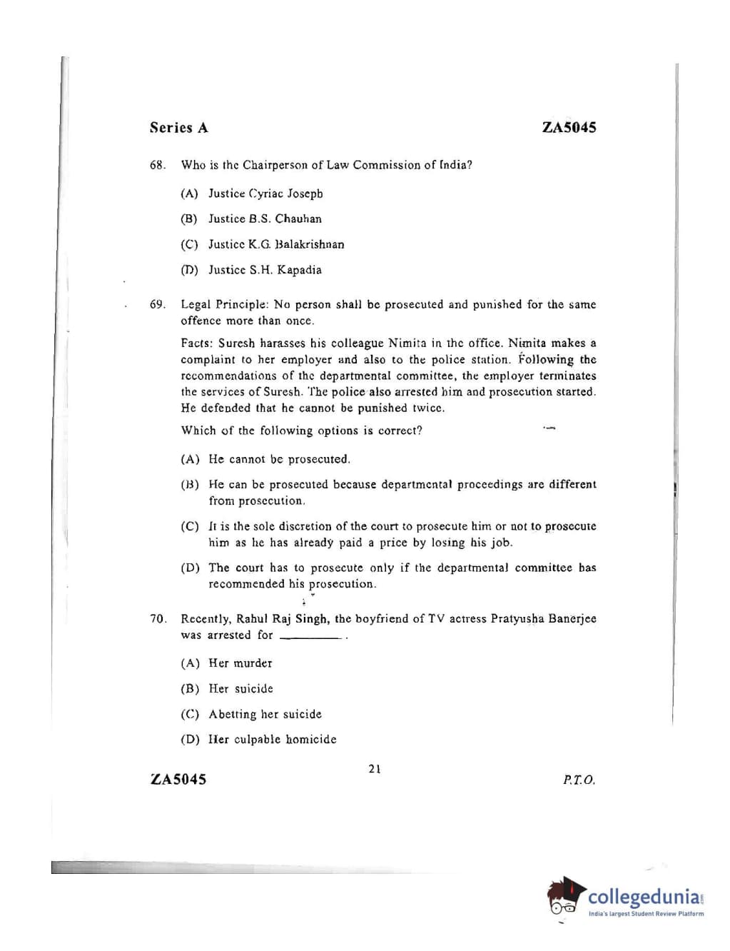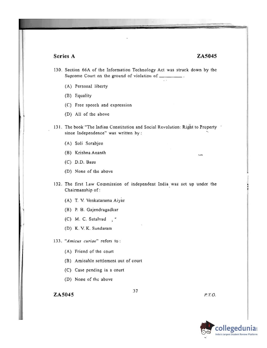 DU LLB 2016 Question paper with answer key pdf conducted on June 22, 2016 in Afternoon Session (12 PM to 2 PM) is available for download. The exam was successfully organized by University of Delhi. The question paper comprised a total of 175 questions.