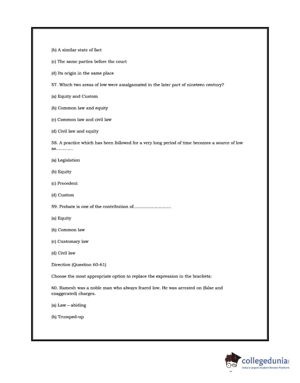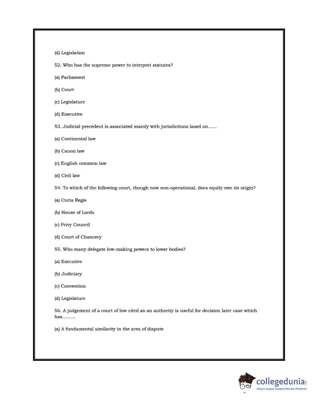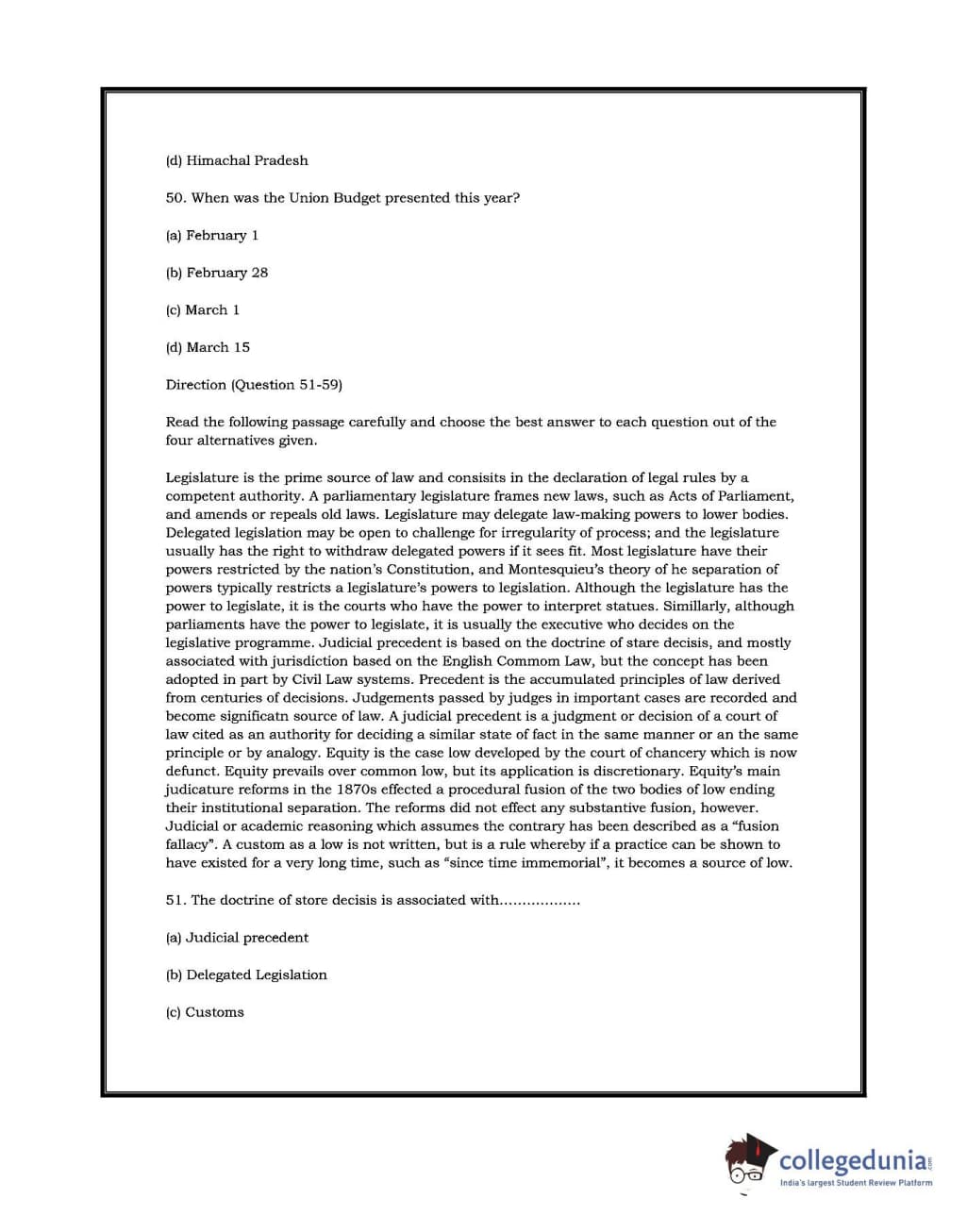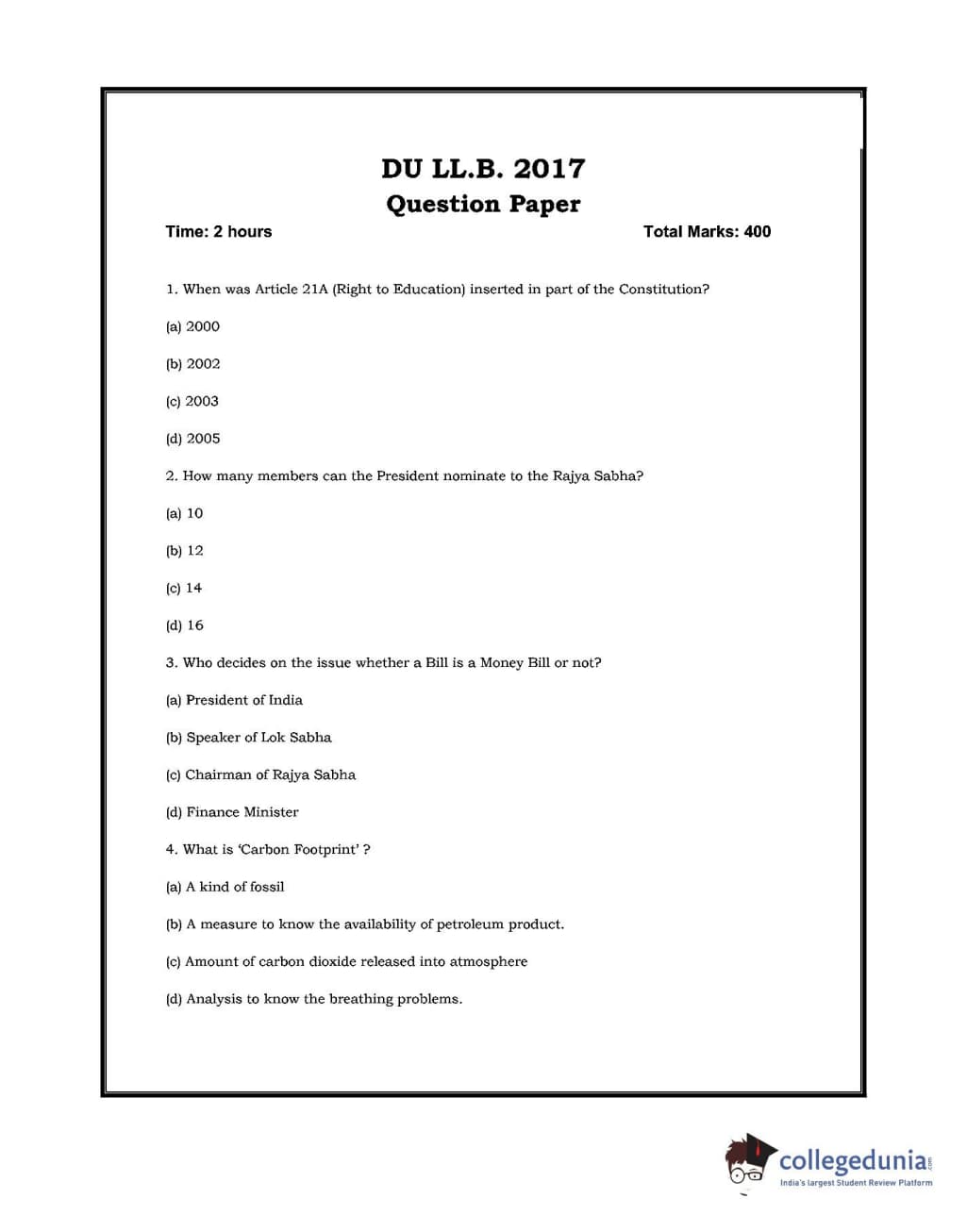 DU LLB 2017 Question paper with answer key pdf conducted on July 2, 2017 is available for download. The exam was successfully organized by University of Delhi. In terms of difficulty level, DU LLB was of Moderate level. The question paper comprised a total of 100 questions.