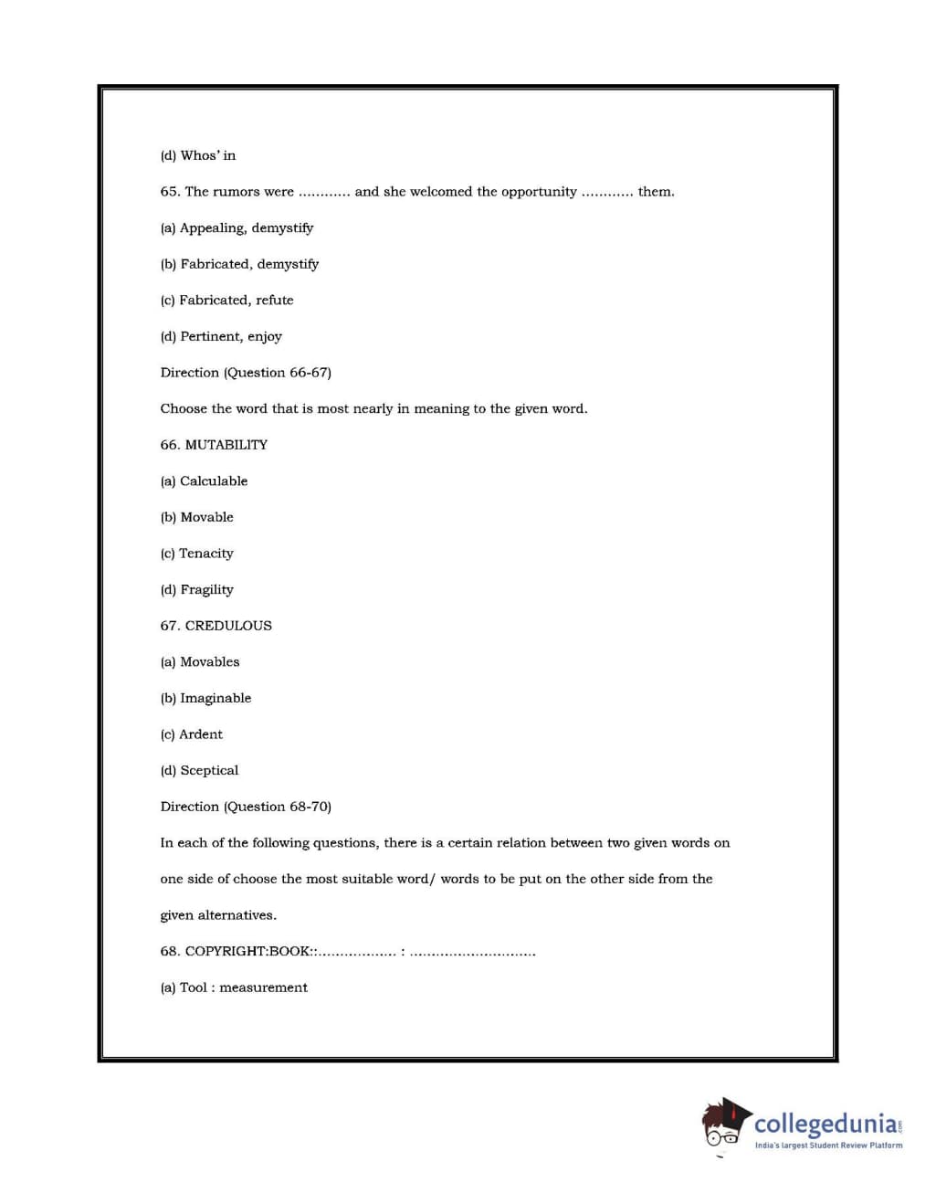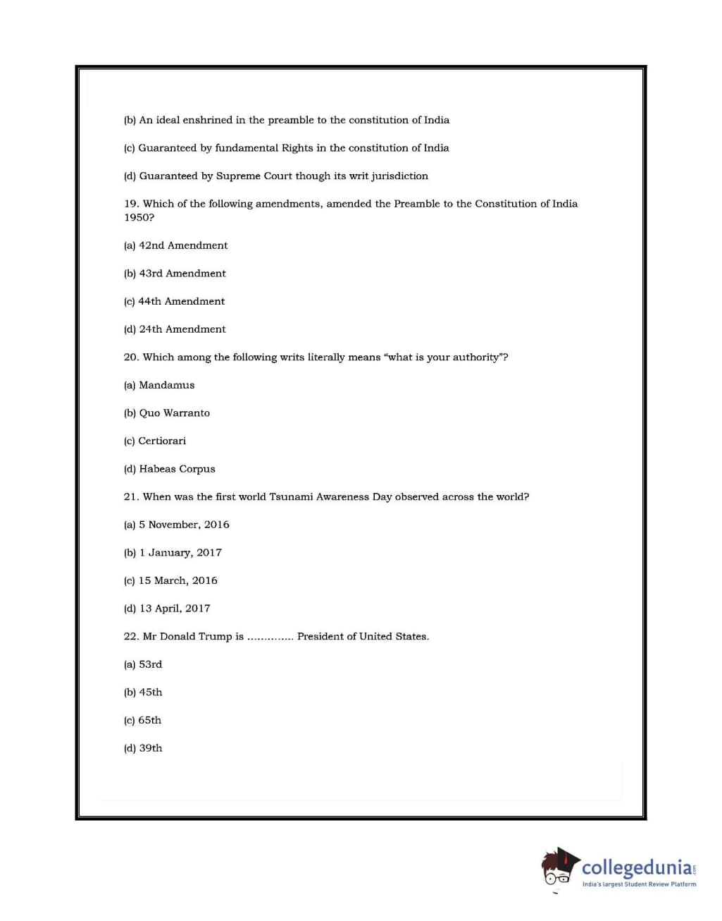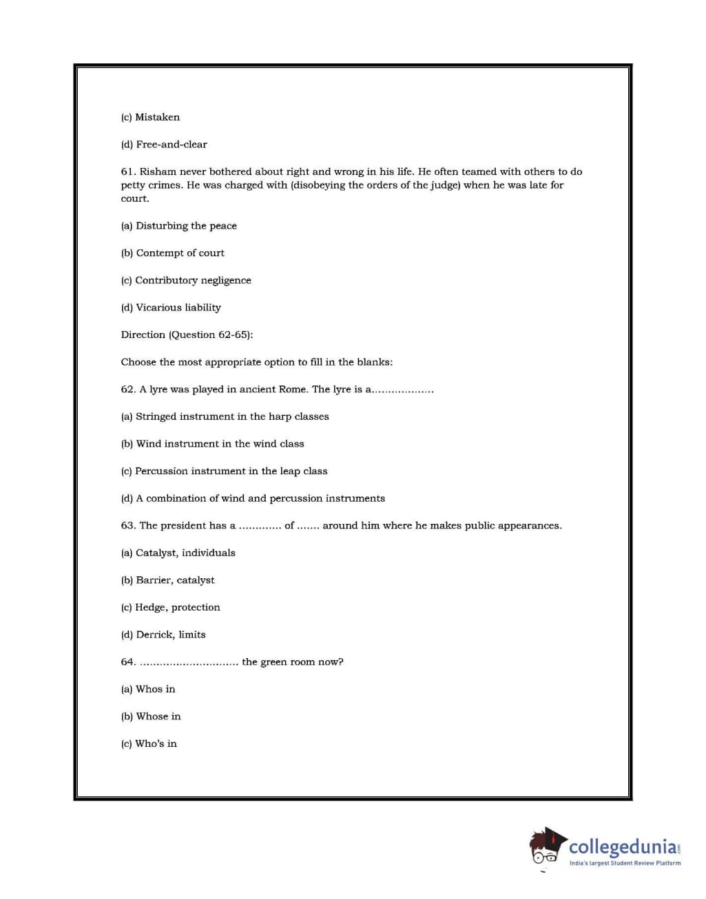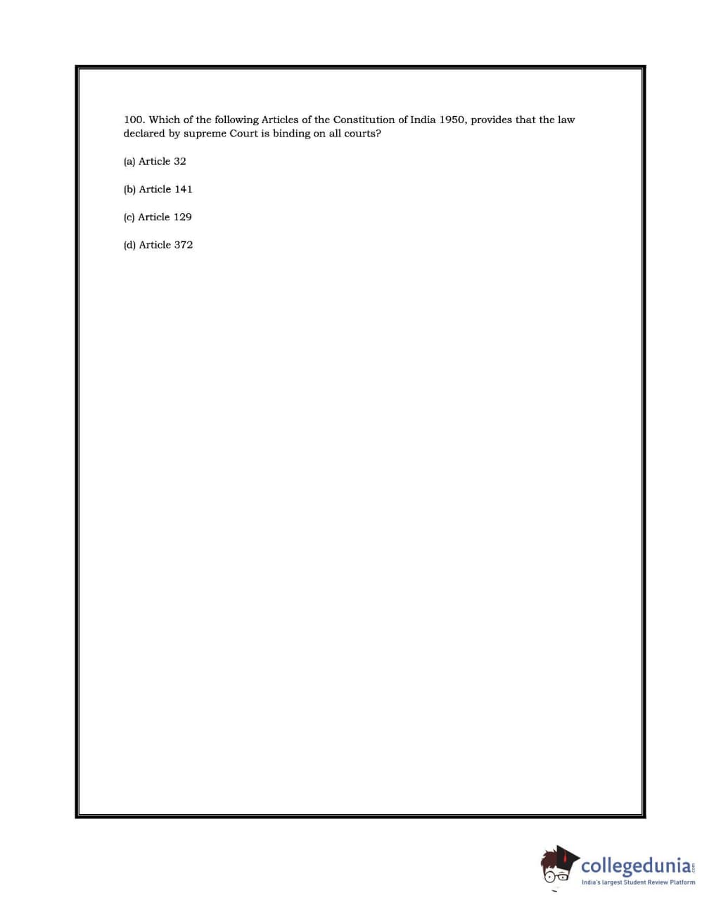DU LLB 2017 Question paper with answer key pdf conducted on July 2, 2017 is available for download. The exam was successfully organized by University of Delhi. In terms of difficulty level, DU LLB was of Moderate level. The question paper comprised a total of 100 questions.