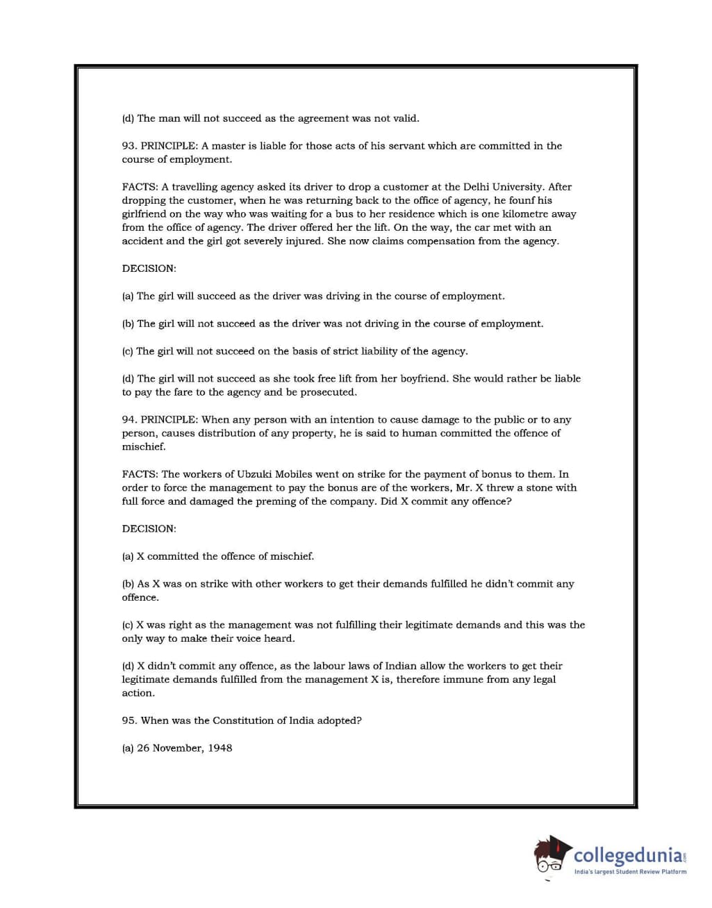 DU LLB 2017 Question Paper with Answer Key PDFs