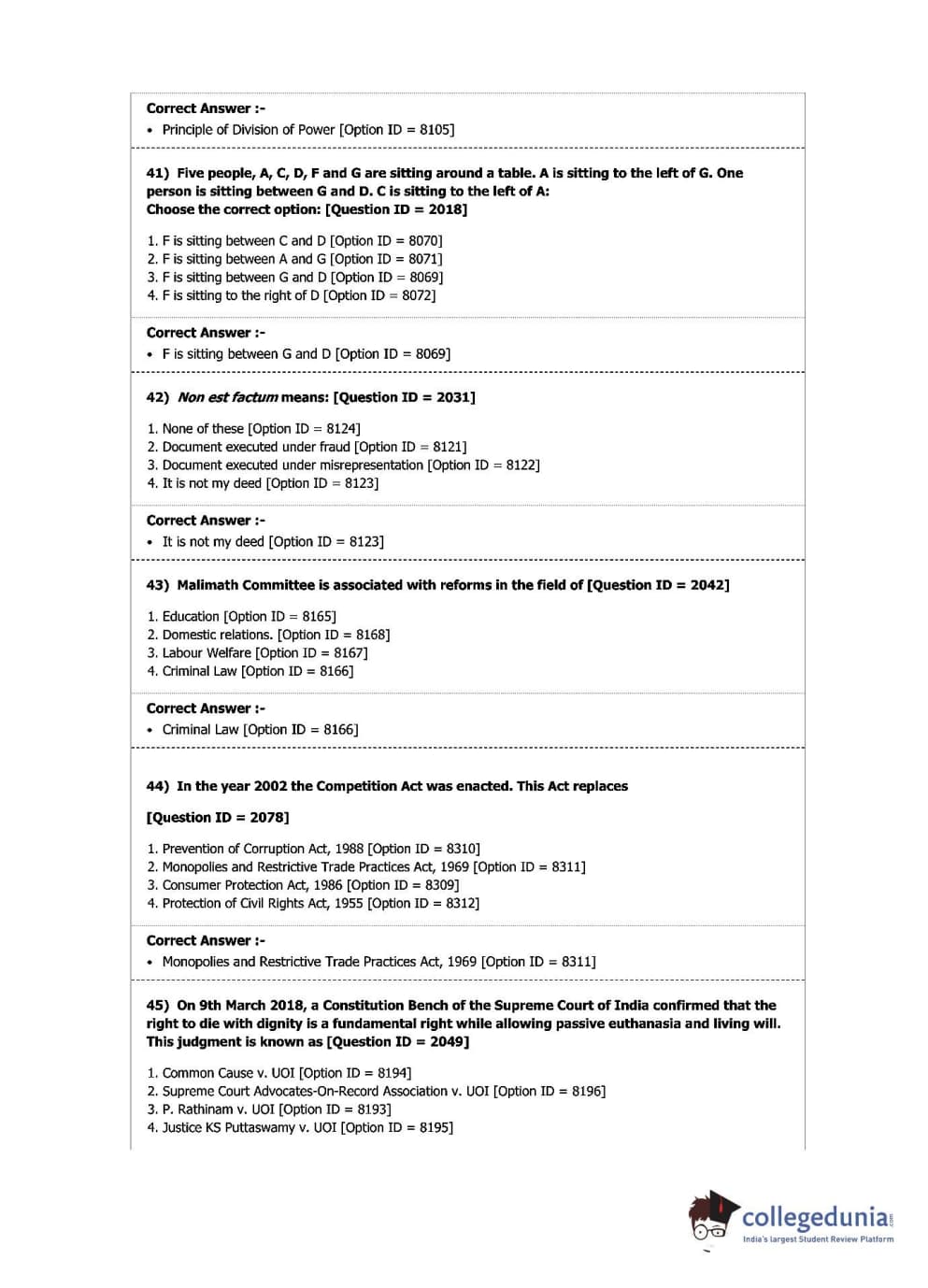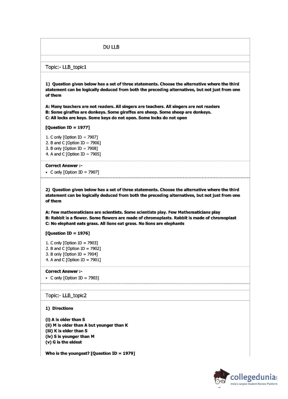 | DU LLB 2019 L.L.B. Question Paper PDF | DU LLB 2019 L.L.B. Answer Key PDF |