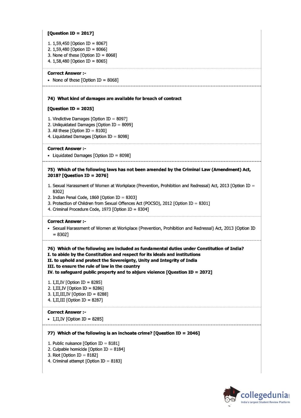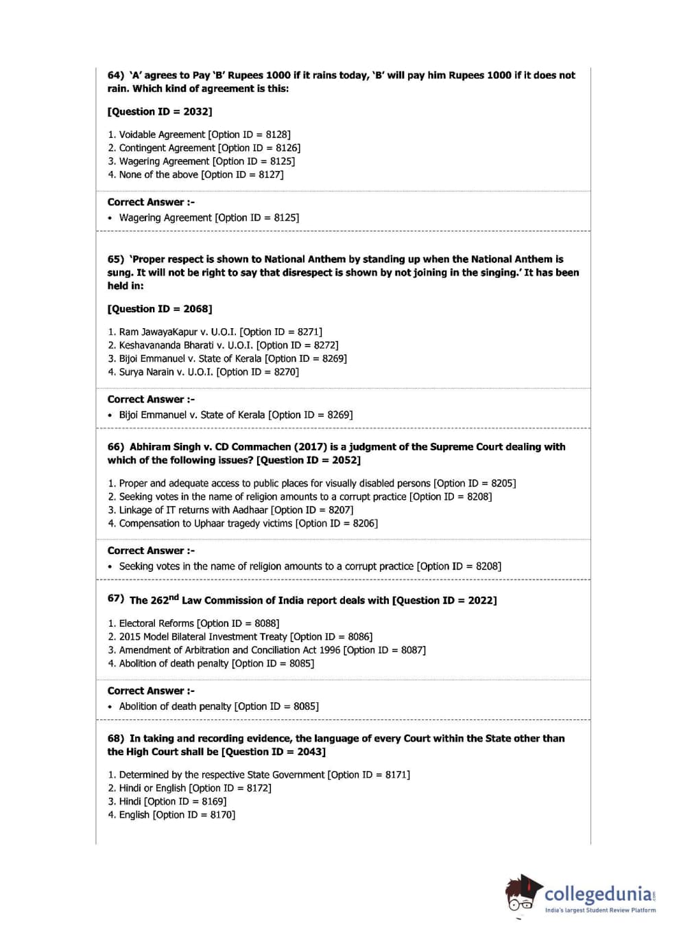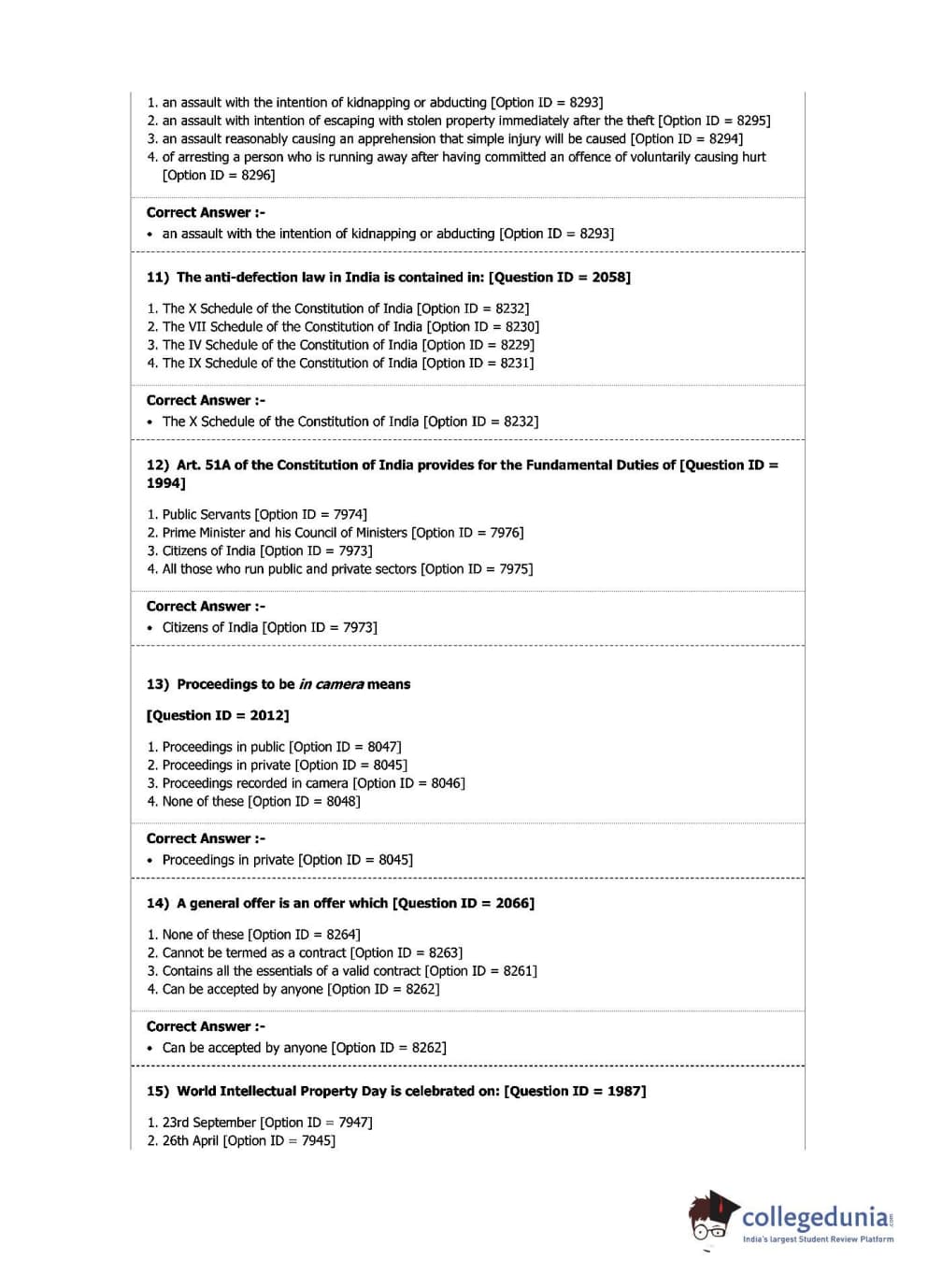 DU LLB 2019 L.L.B. Question Paper with Answer Key PDFs Shift 1