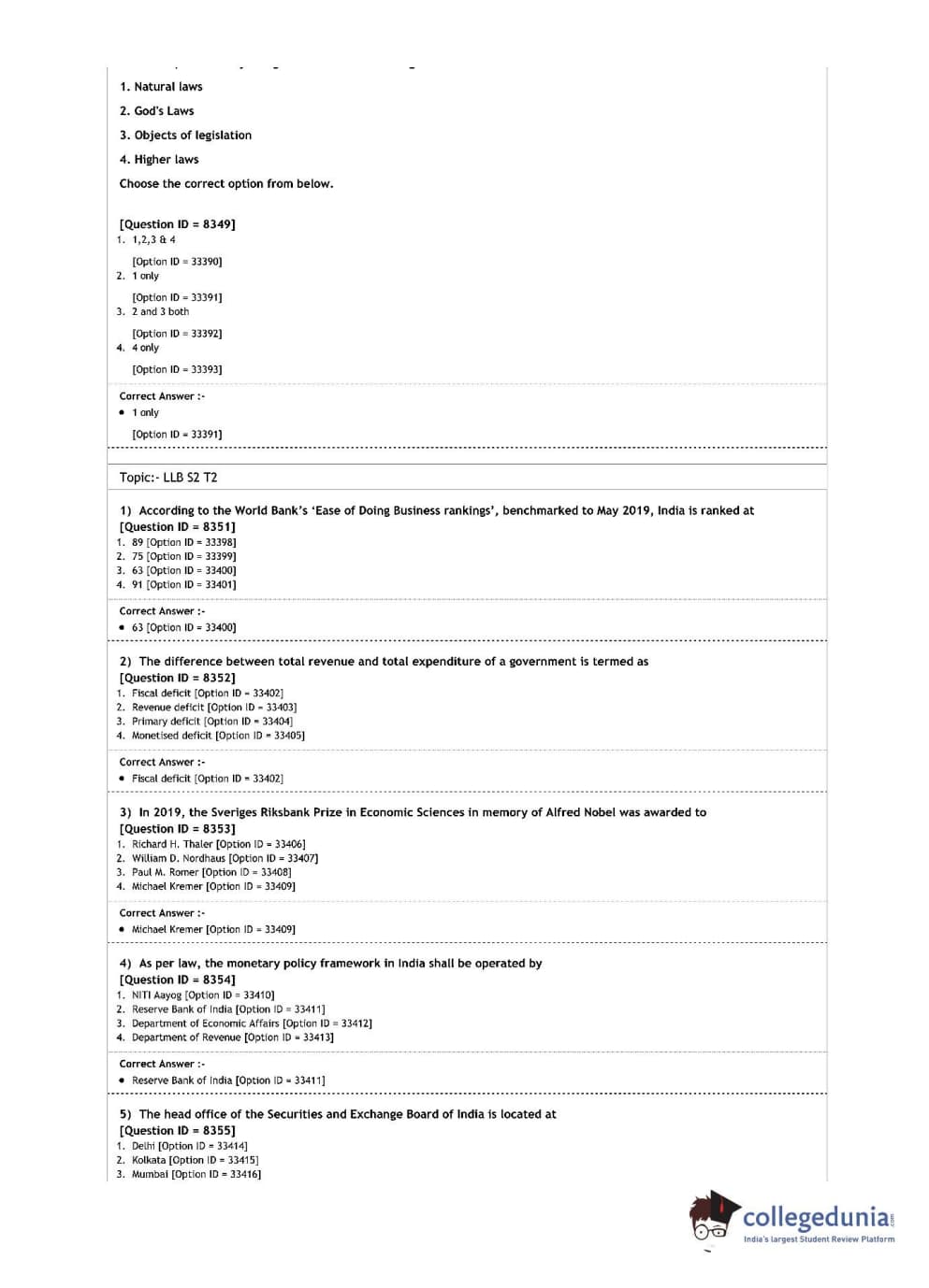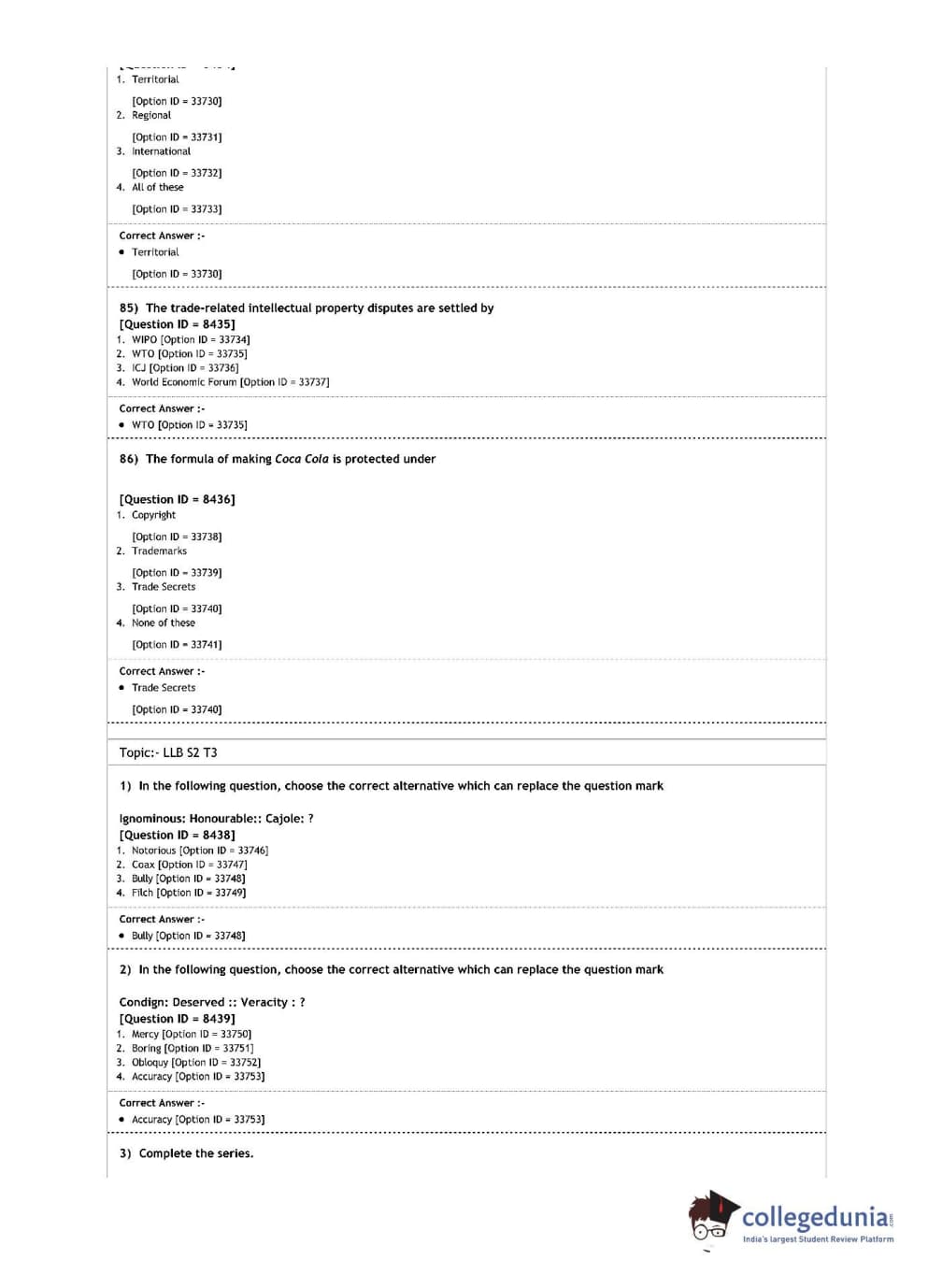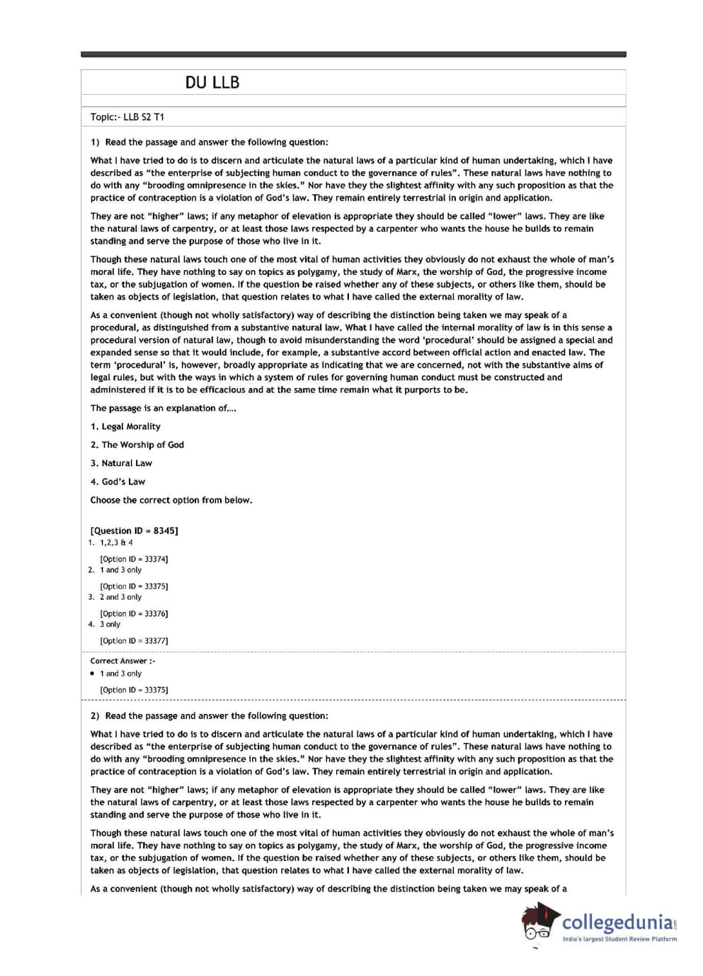 | DU LLB 2020 L.L.B. Question Paper PDF | DU LLB 2020 L.L.B. Answer Key PDF |