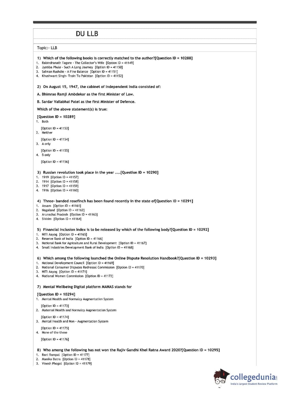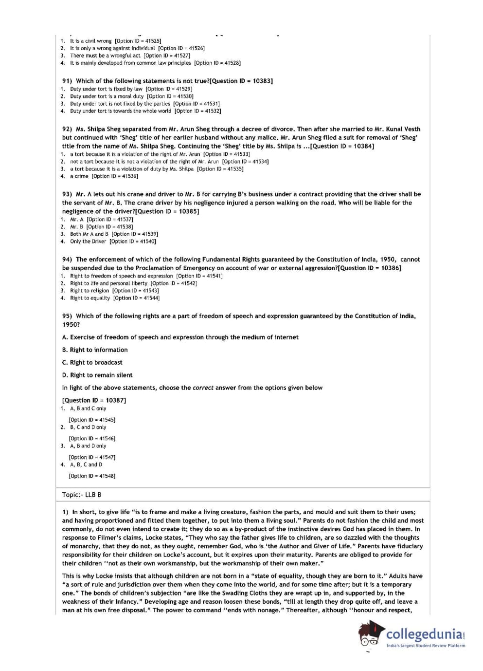 DU LLB 2021 Question Paper with Answer Key PDFs Shift 1