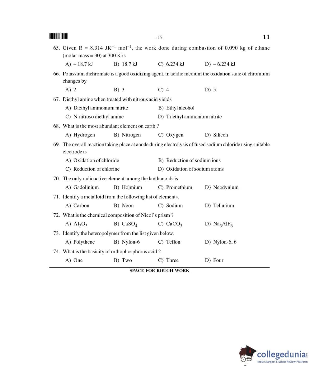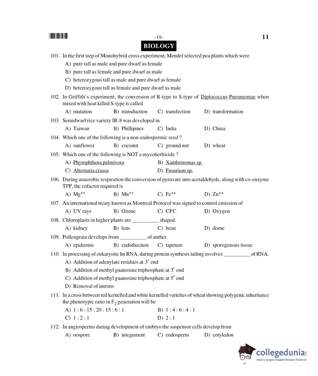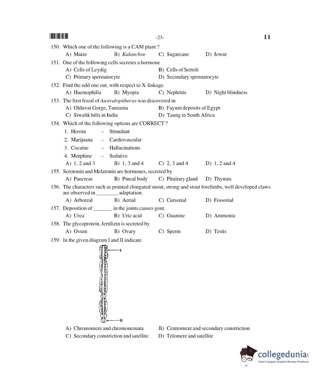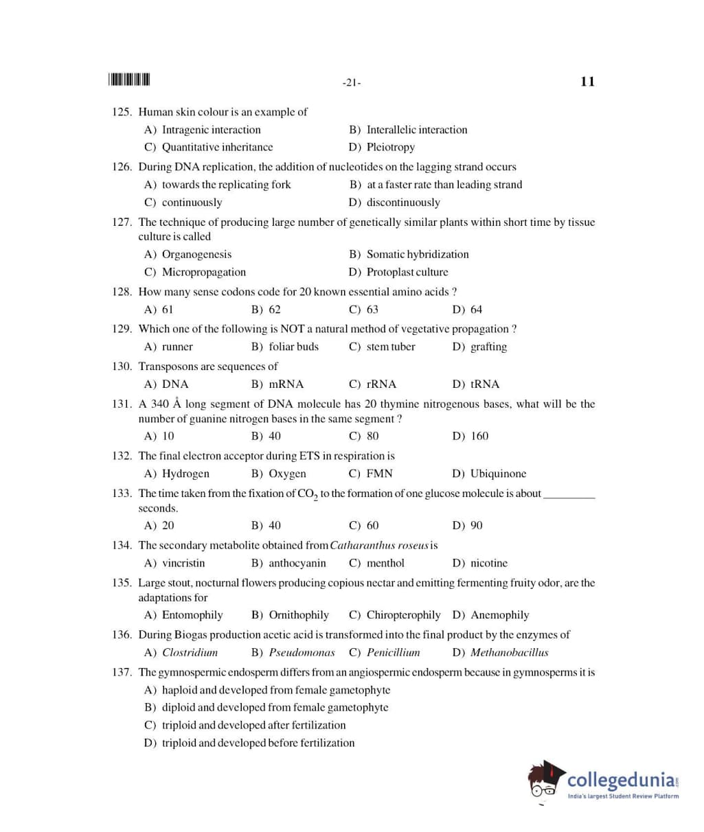 MHT CET 2015 PCB Code 11 Question Paper with Answer Key PDFs