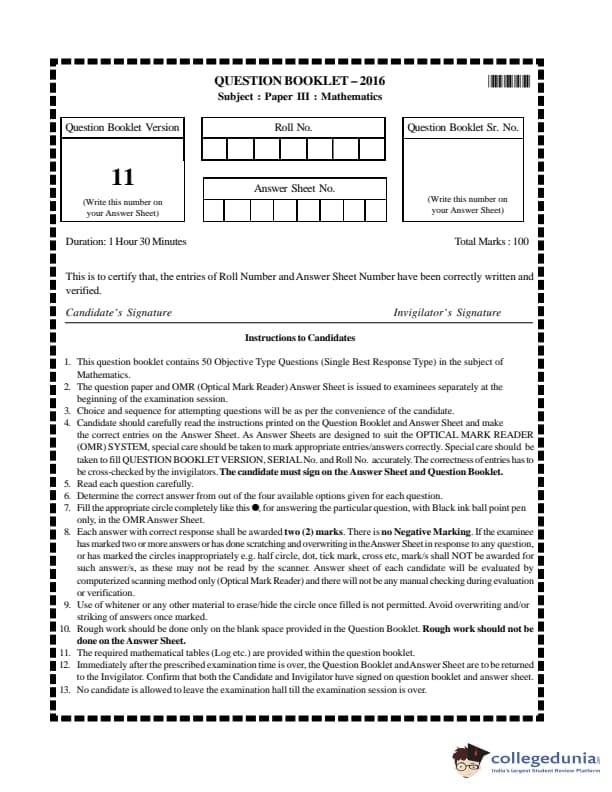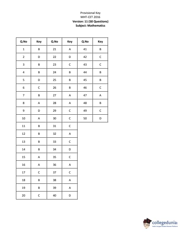 | MHT CET 2016 Mathematics Question Paper PDF | MHT CET 2016 Mathematics Answer Key PDF |