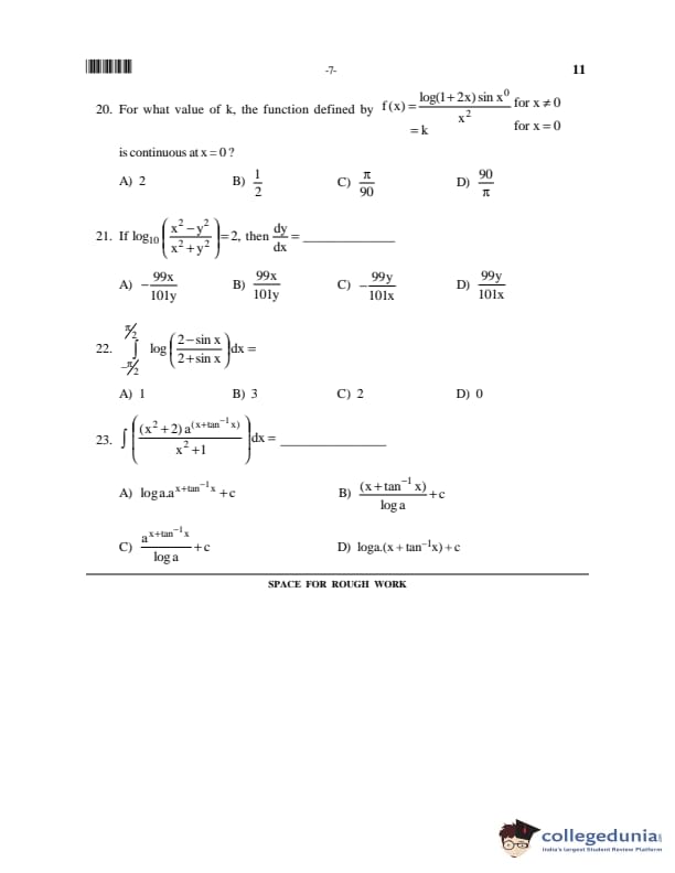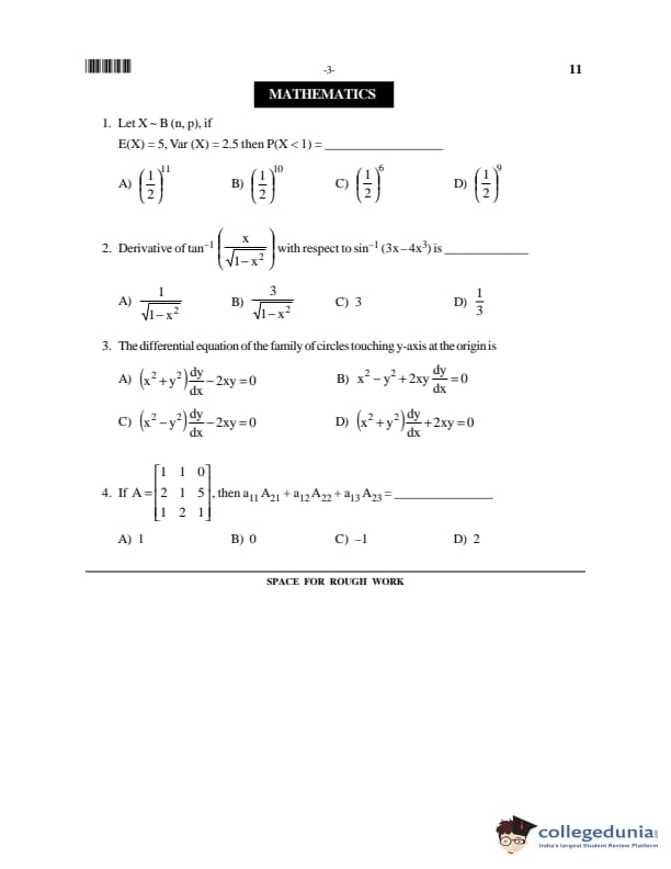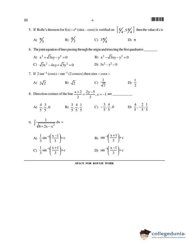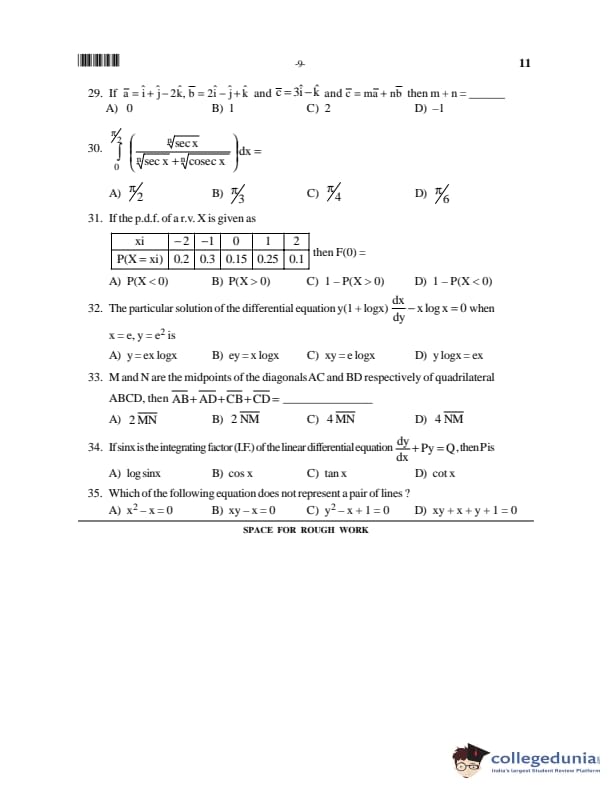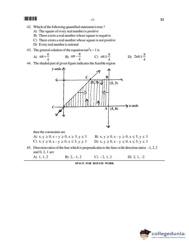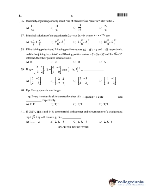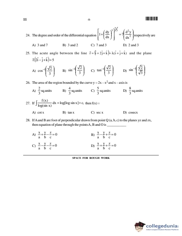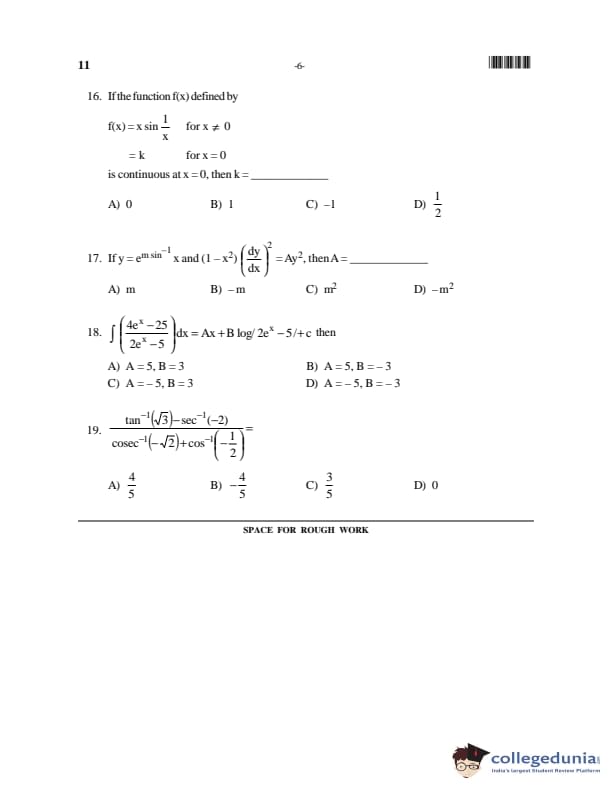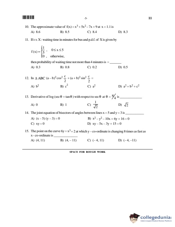 MHT CET 2016 Mathematics Question paper with answer key pdf conducted on May 5, 2016 in Afternoon Session 3:00 PM to 4:30 PM for Set - 11 is available for download. The exam was successfully organized by State Common Entrance Test Cell. The question paper comprised a total of 50 questions.