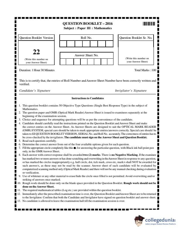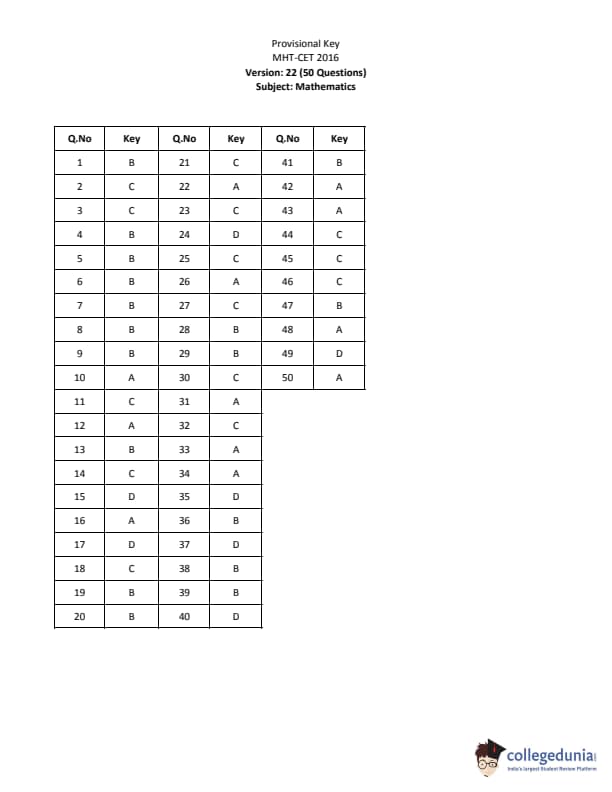 | MHT CET 2016 Mathematics Question Paper PDF | MHT CET 2016 Mathematics Answer Key PDF |