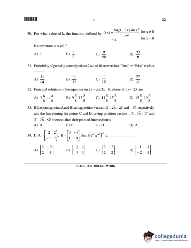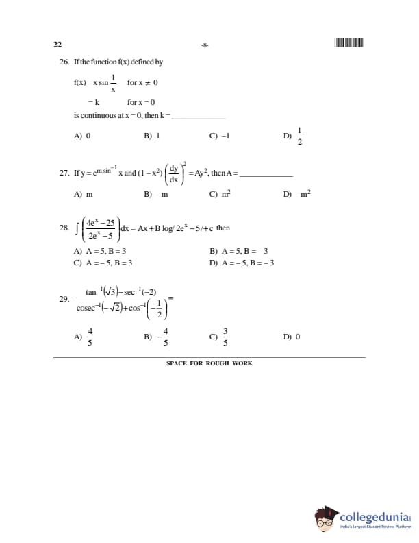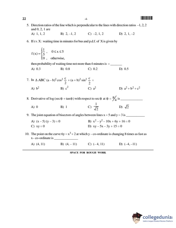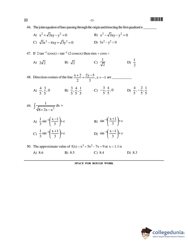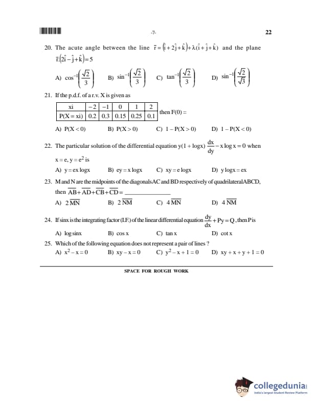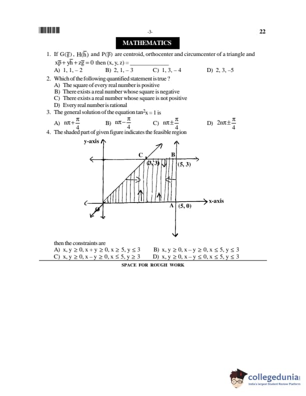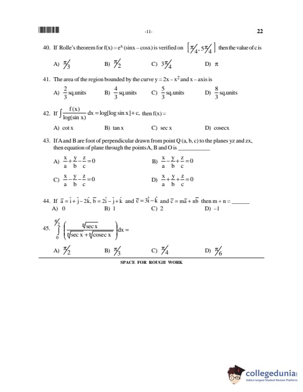 MHT CET 2016 Mathematics Question paper with answer key pdf conducted on May 5, 2016 in Afternoon Session 3:00 PM to 4:30 PM for Set - 22 is available for download. The exam was successfully organized by State Common Entrance Test Cell. The question paper comprised a total of 50 questions.