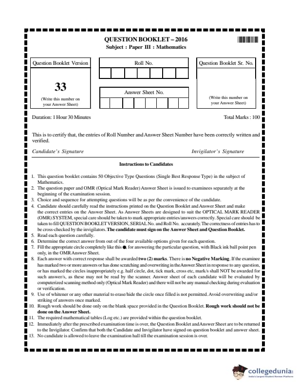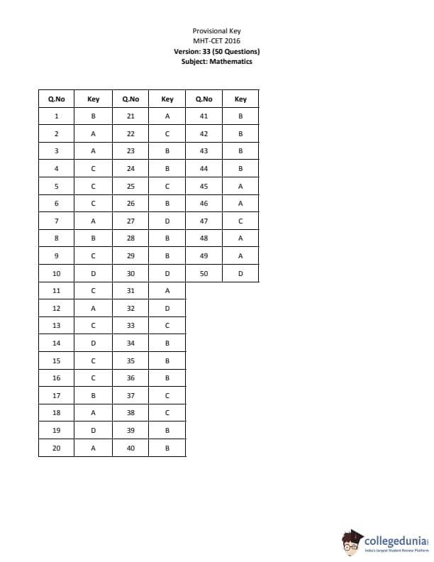 | MHT CET 2016 Mathematics Question Paper PDF | MHT CET 2016 Mathematics Answer Key PDF |