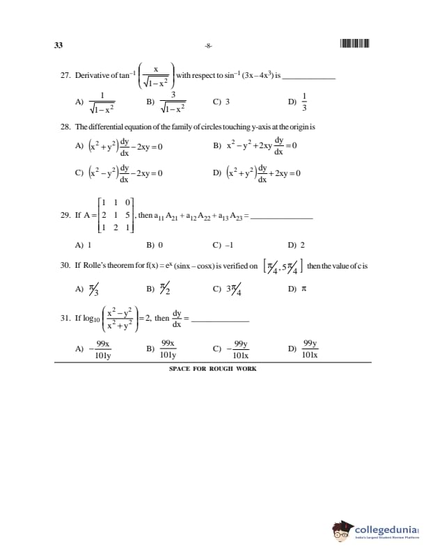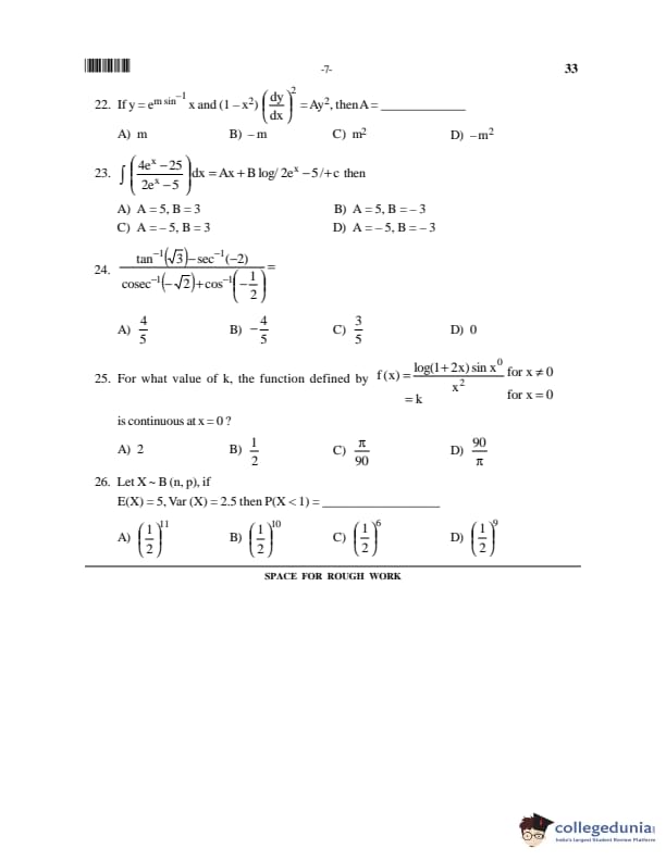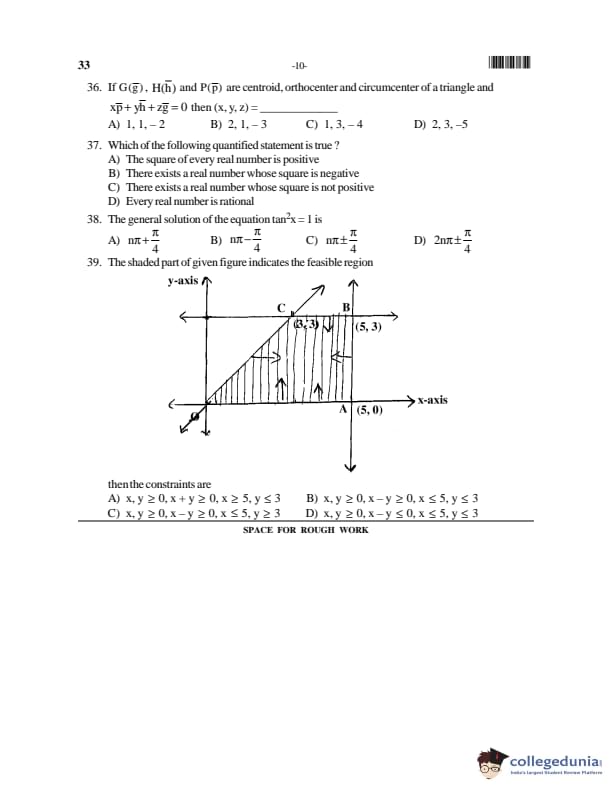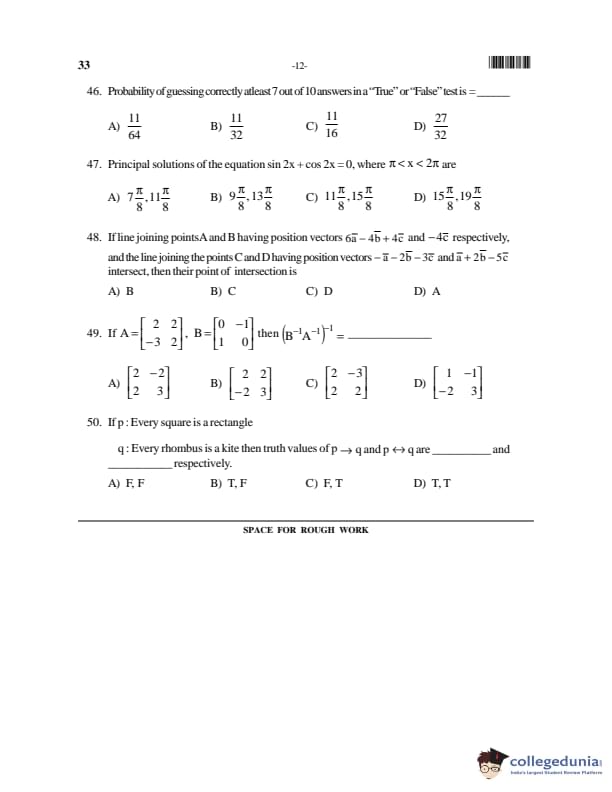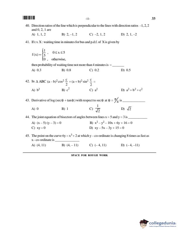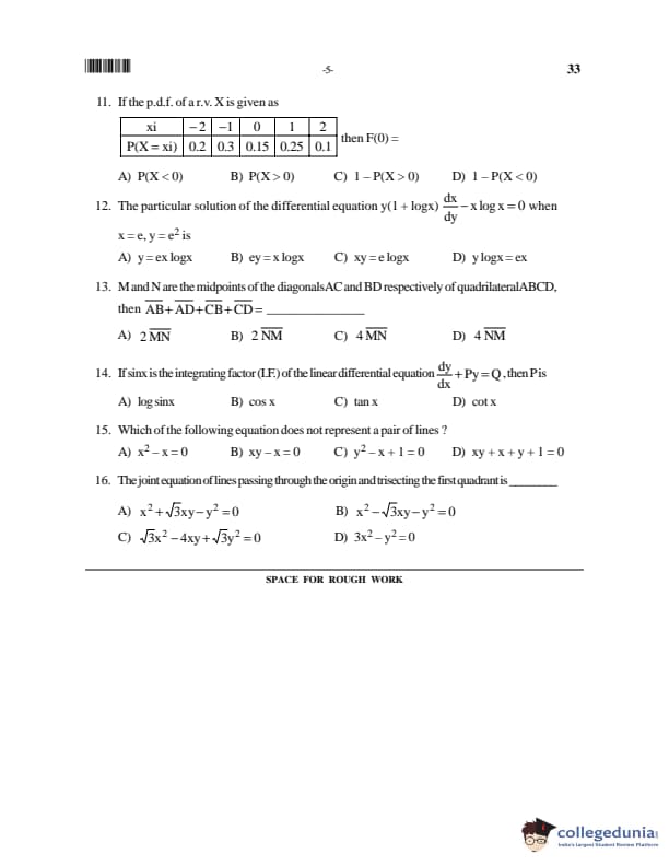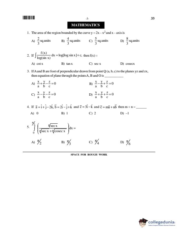 MHT CET 2016 Mathematics Question paper with answer key pdf conducted on May 5, 2016 in Afternoon Session 3:00 PM to 4:30 PM for Set - 33 is available for download. The exam was successfully organized by State Common Entrance Test Cell. The question paper comprised a total of 50 questions.