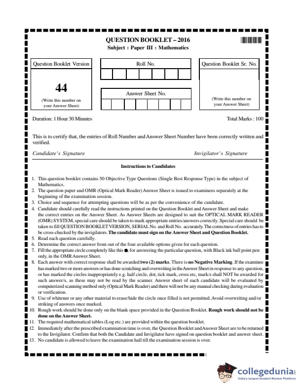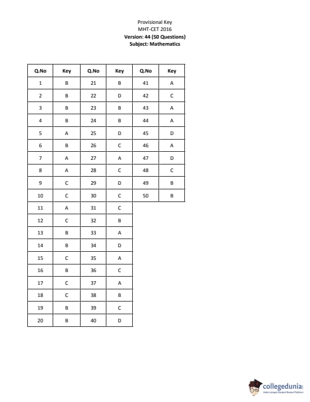 | MHT CET 2016 Mathematics Question Paper PDF | MHT CET 2016 Mathematics Answer Key PDF |