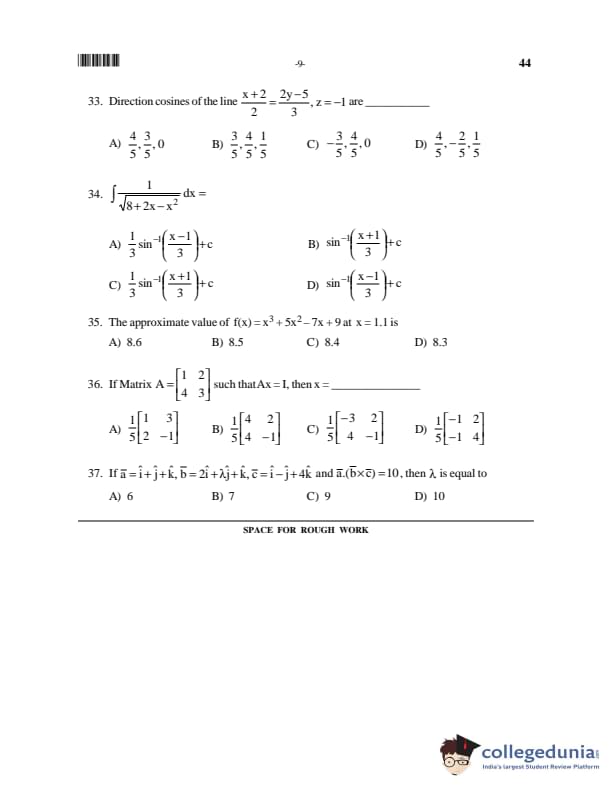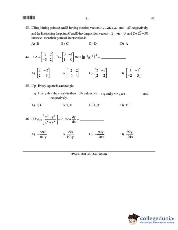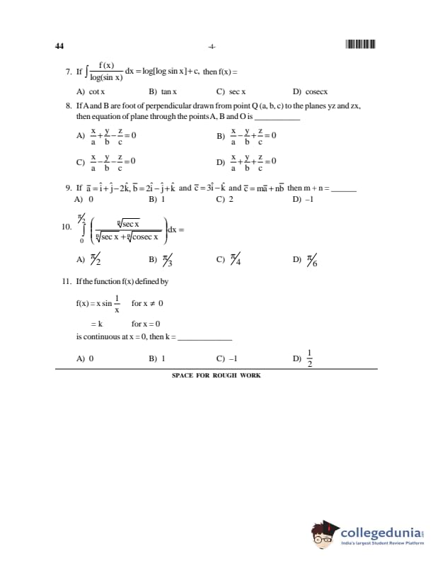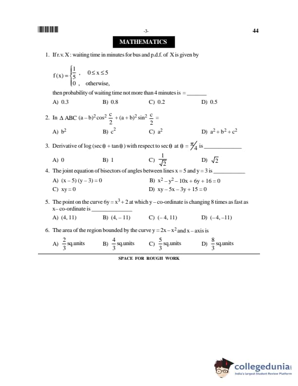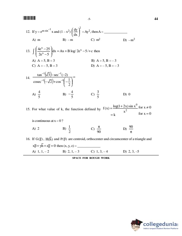 MHT CET 2016 Mathematics Question paper with answer key pdf conducted on May 5, 2016 in Afternoon Session 3:00 PM to 4:30 PM for Set - 44 is available for download. The exam was successfully organized by State Common Entrance Test Cell. The question paper comprised a total of 50 questions.