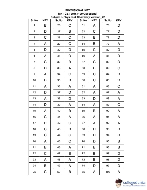 | MHT CET 2016 Physics & Chemistry Question Paper PDF | MHT CET 2016 Physics & Chemistry Answer Key PDF |