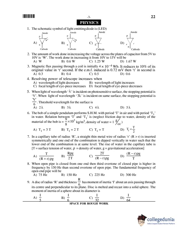 MHT CET 2016 Physics & Chemistry Question paper with answer key pdf conducted on May 5, 2016 for Set - 22 is available for download. The exam was successfully organized by State Common Entrance Test Cell. The question paper comprised a total of 100 questions divided among two sections.