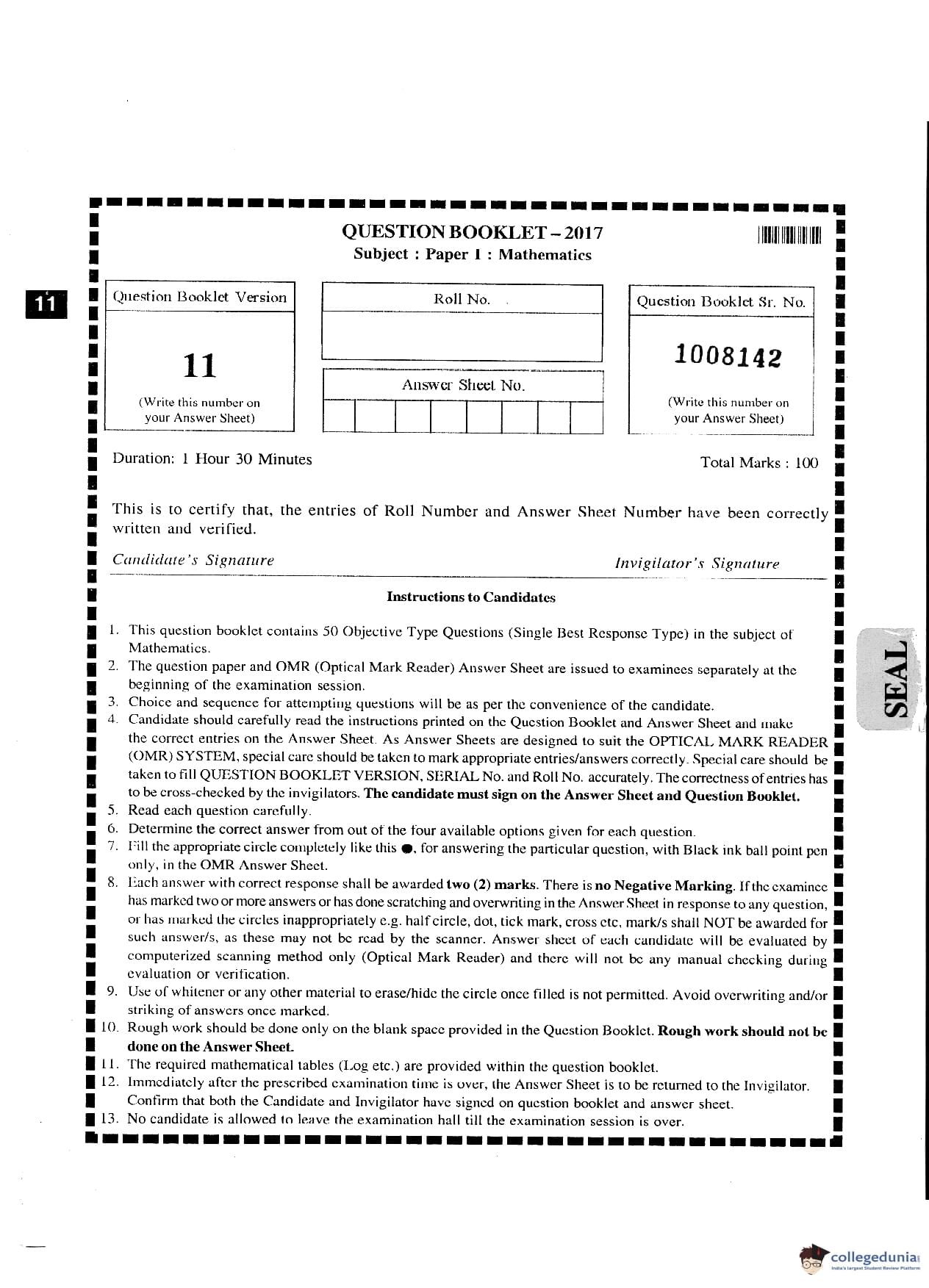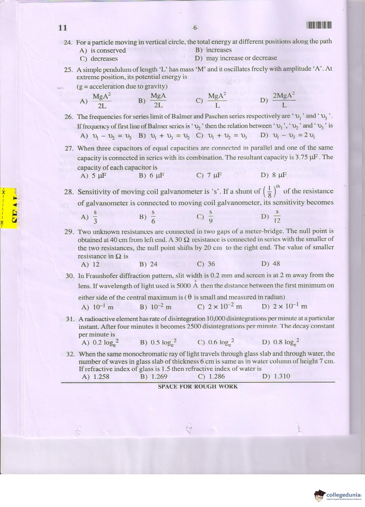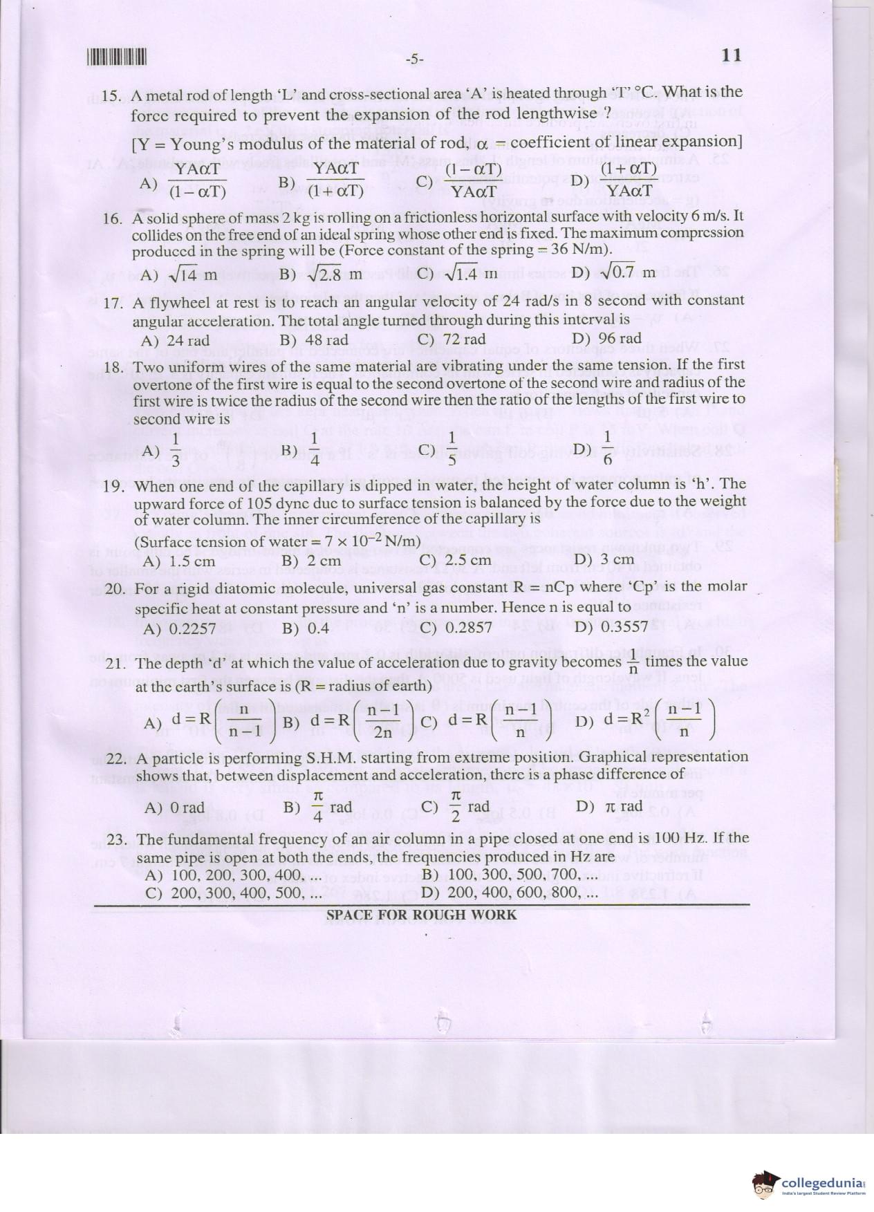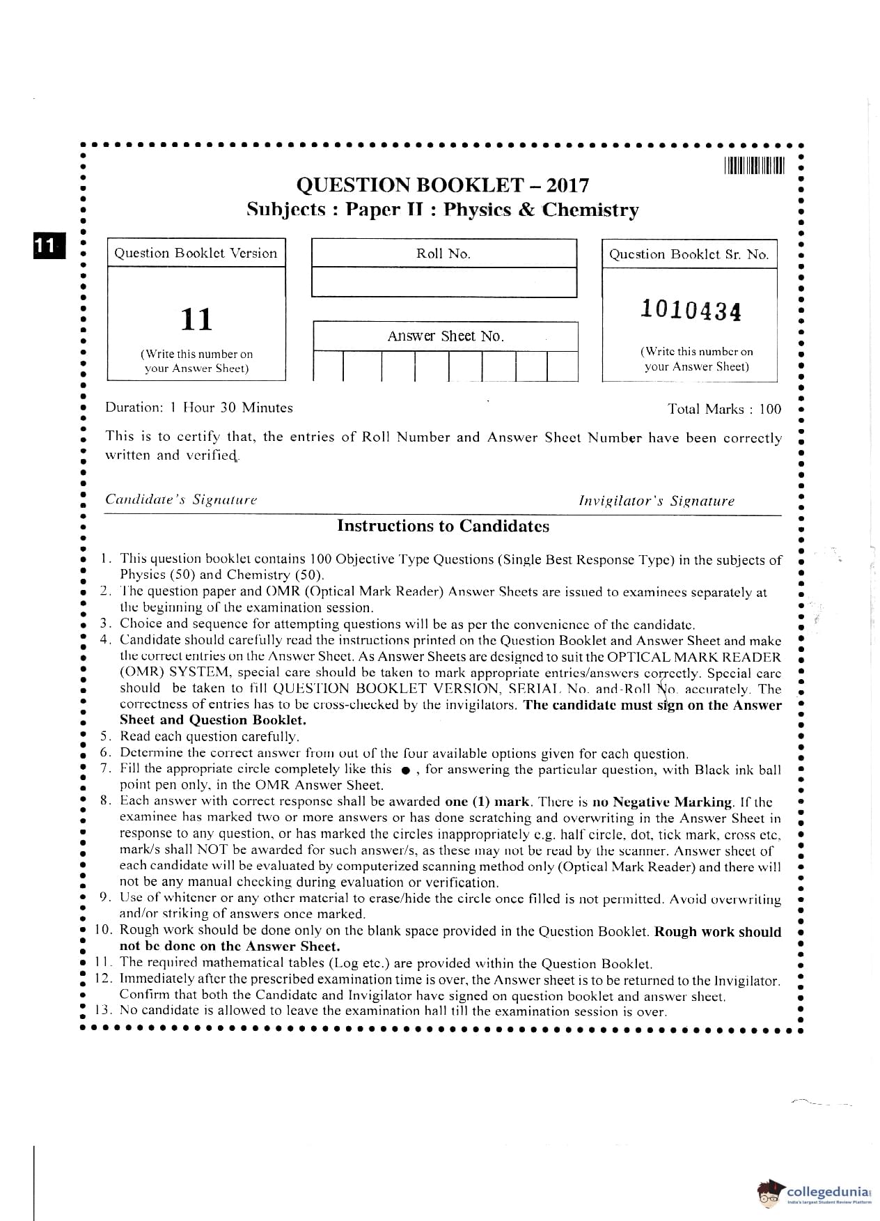 MHT CET 2017 PCM Question Paper with Answer Key PDF Code 11