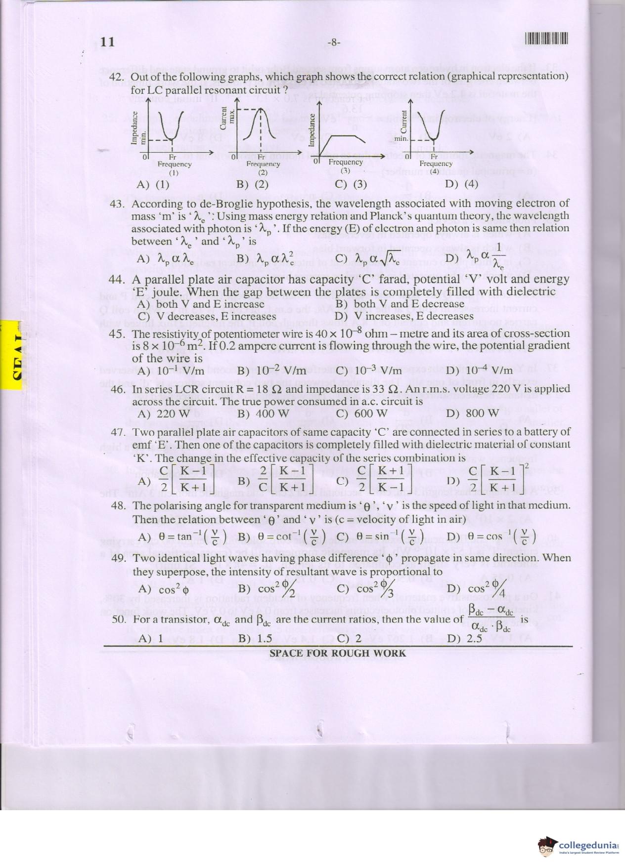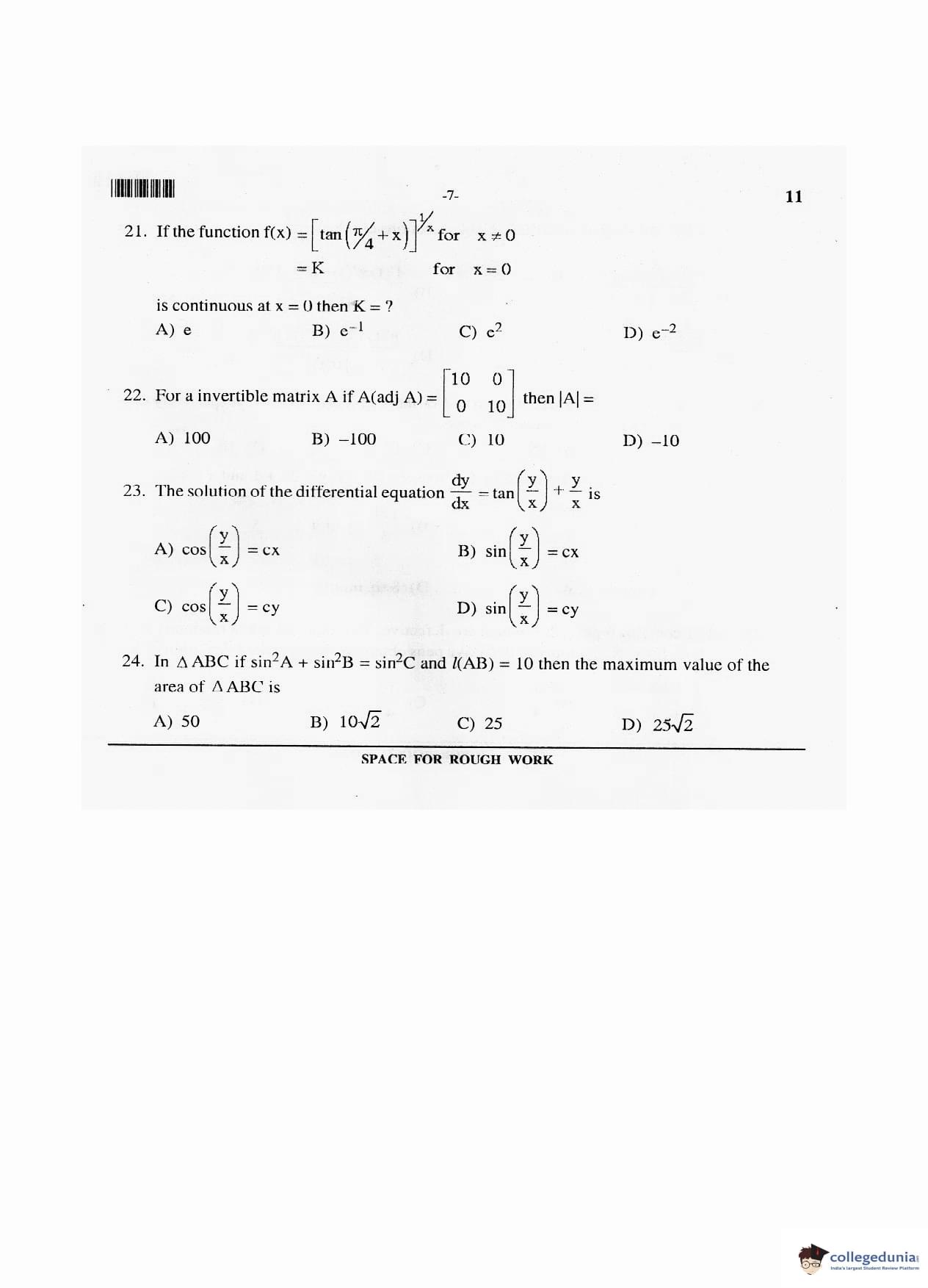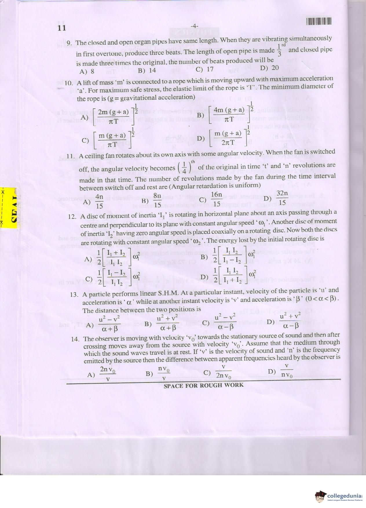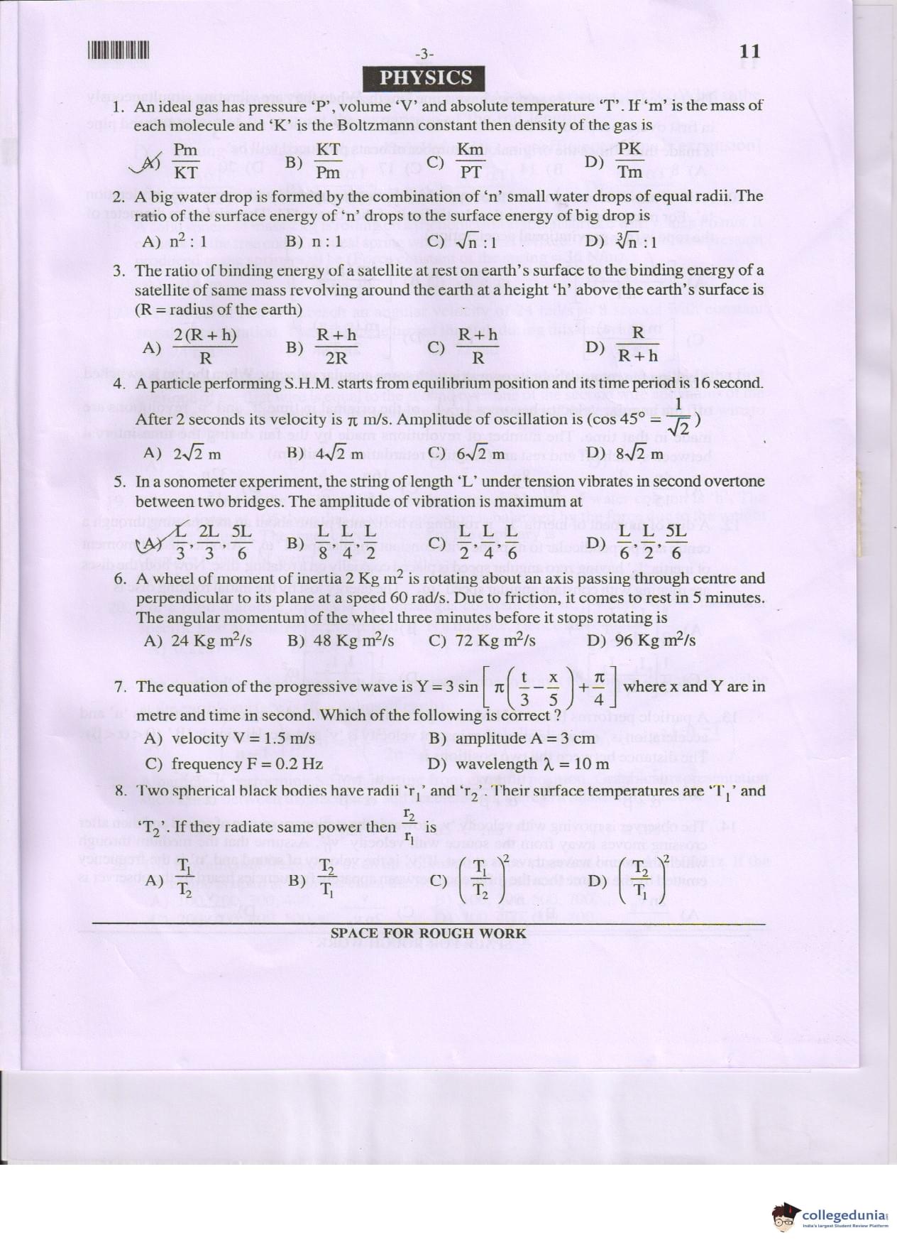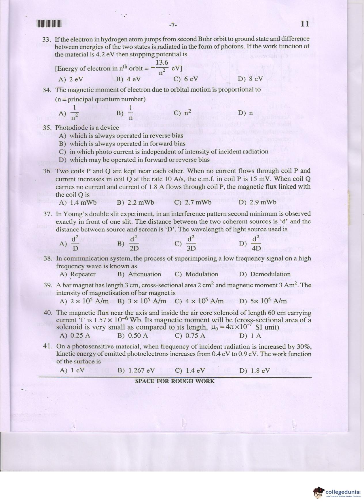 MHT CET 2017 PCM Question Paper with Answer Key PDF Code 11