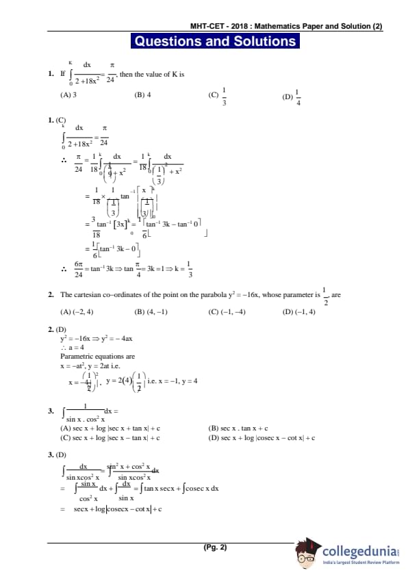 | MHT CET 2018 Maths Question Paper PDF | MHT CET 2018 Maths Answer Key PDF |