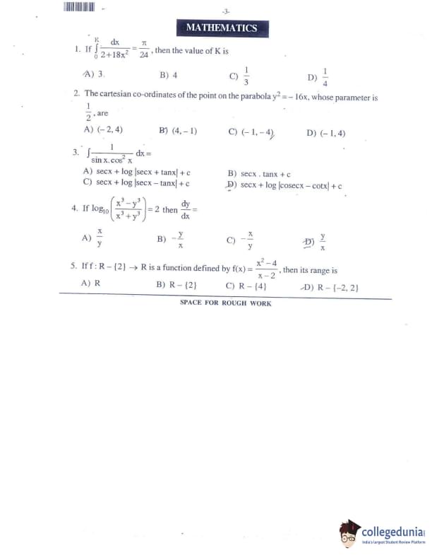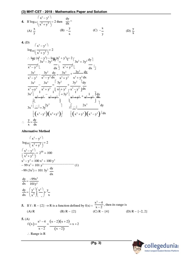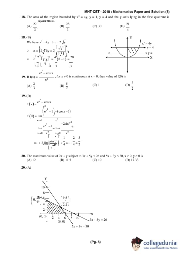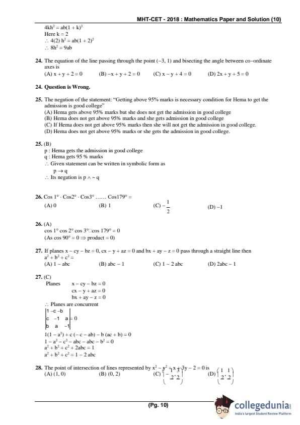 MHT CET 2018 Maths Question paper with answer key pdf conducted on May 10, 2018 is available for download. The exam was successfully organized by State Common Entrance Test Cell. In terms of difficulty level, MHT CET was of Moderate level. The question paper comprised a total of 50 questions.