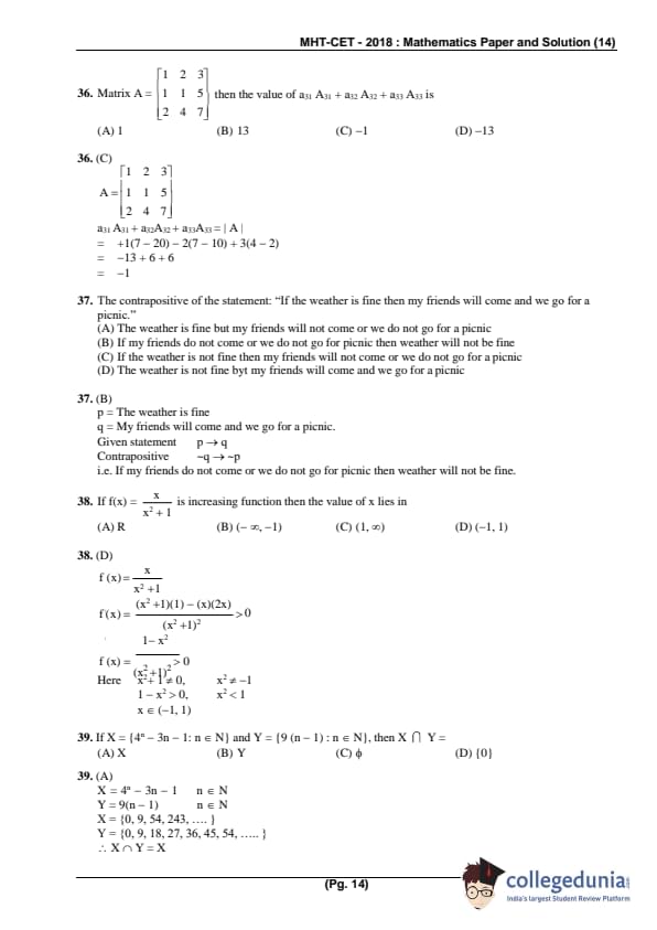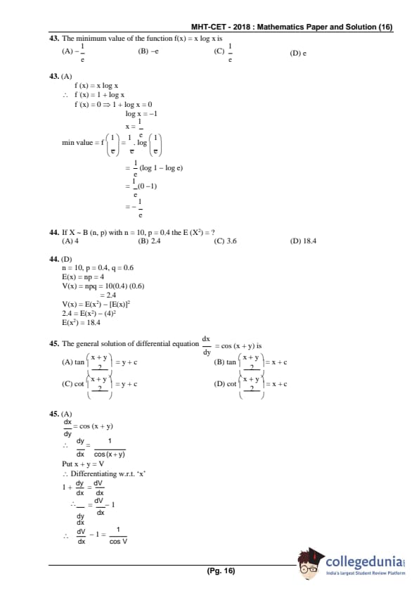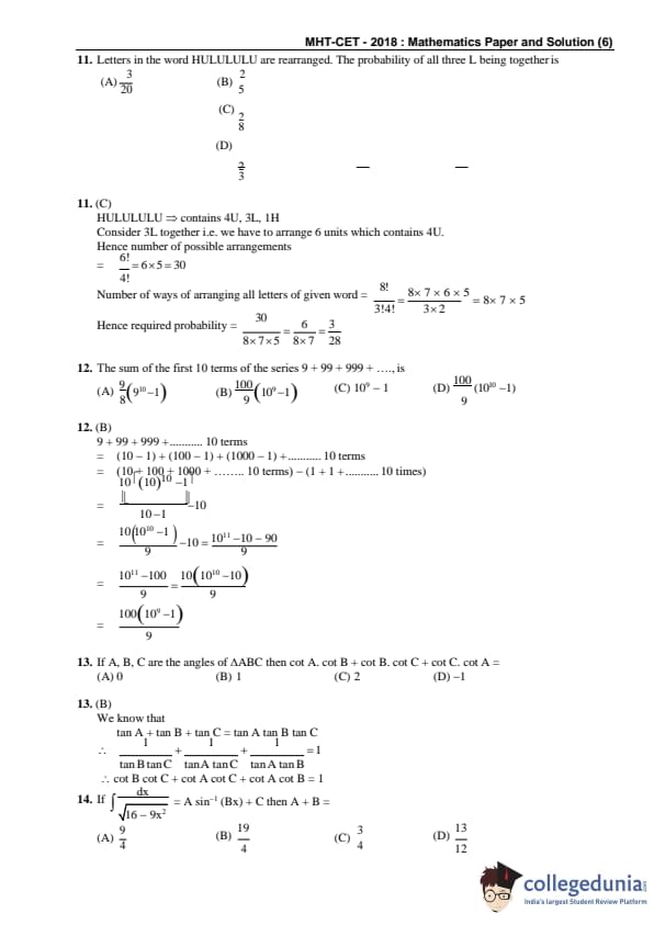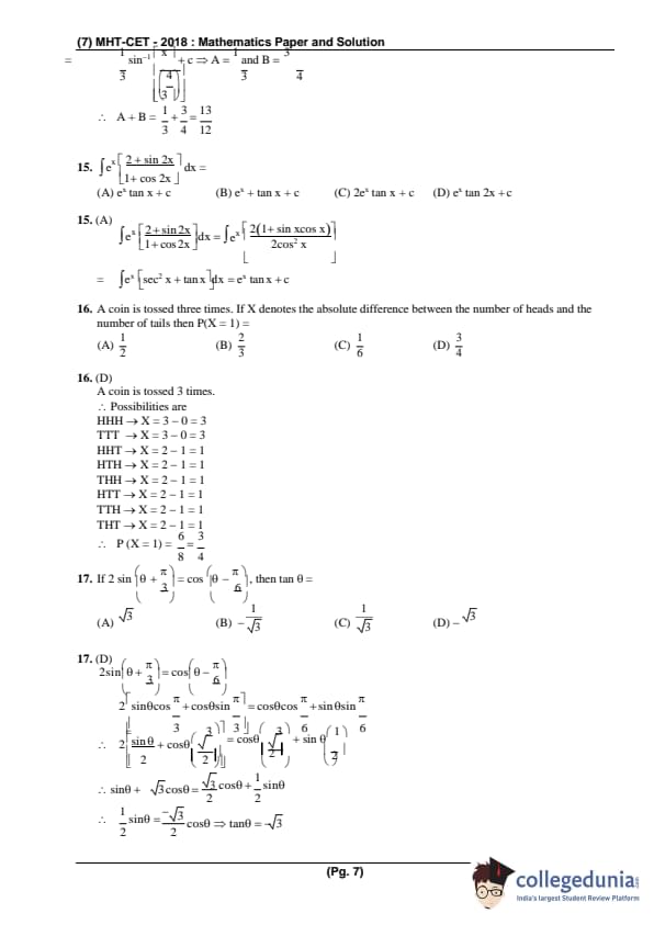 Collegedunia has provided MHT CET Previous Year Question paper pdf with answer key in the links given below: