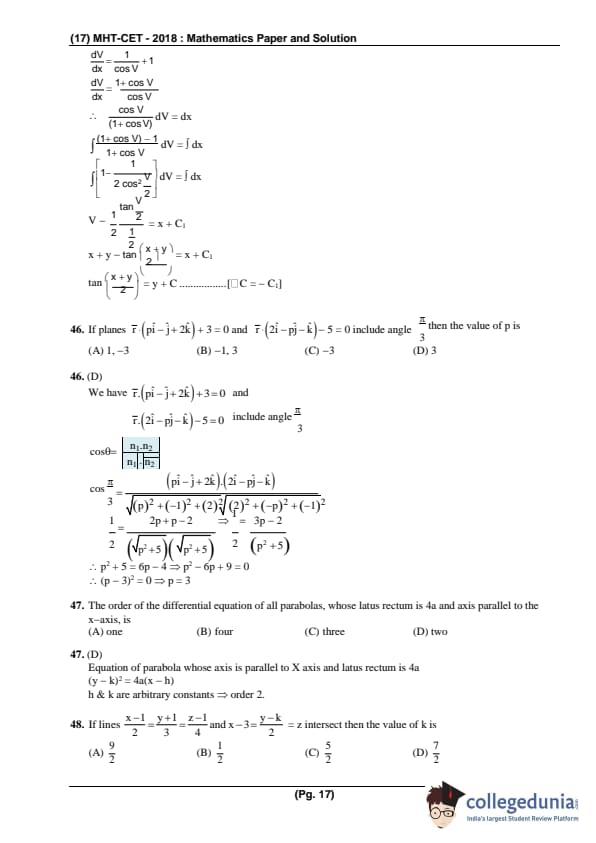 MHT CET 2018 Maths Question Paper with Answer Key PDF for