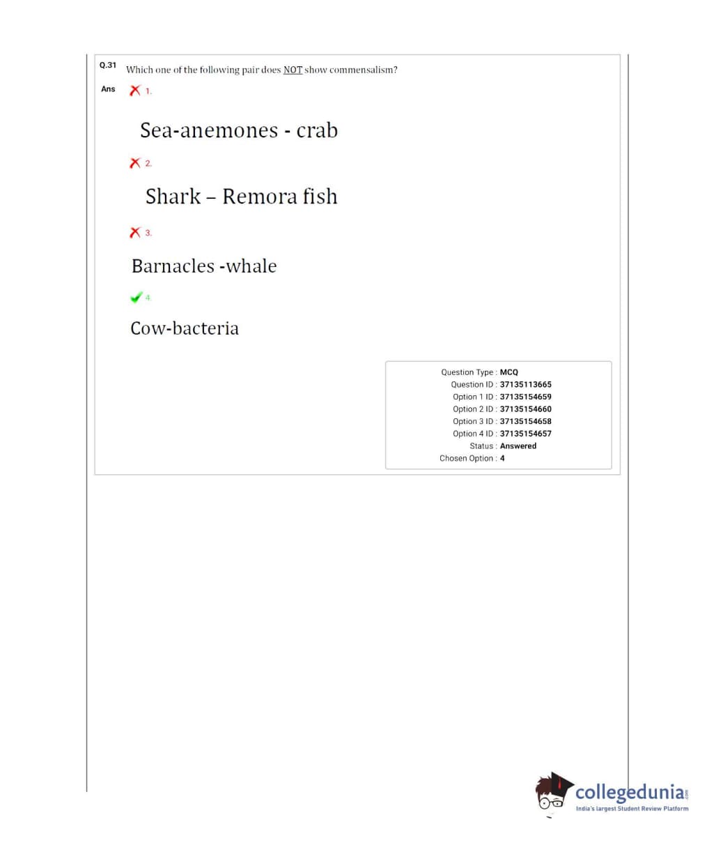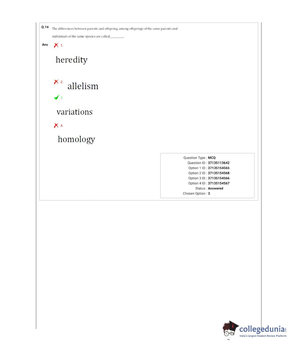 MHT CET 2020 PCB Question Paper with Answer Key PDFs -Shift 1