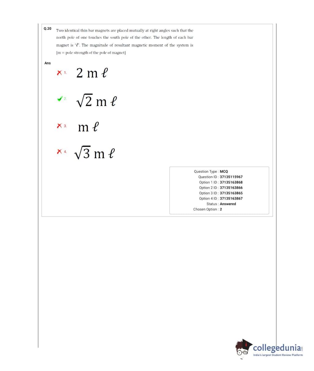 MHT CET 2020 PCM Question Paper with Answer Key PDFs Shift 2