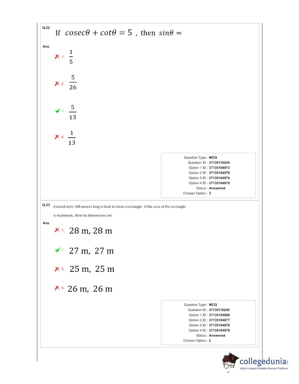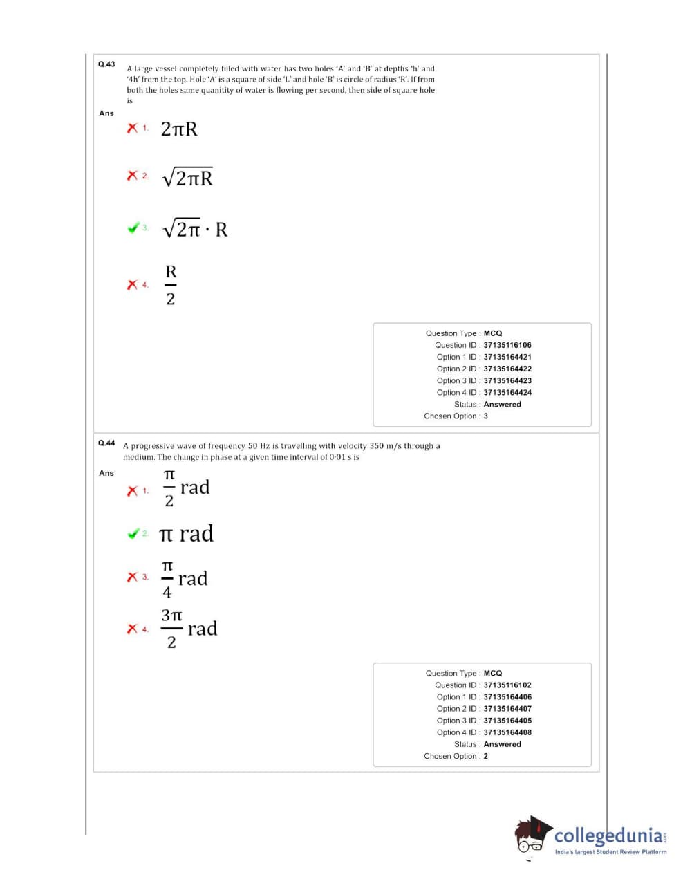 Collegedunia has provided MHT CET Previous Year Question paper pdf with answer key in the links given below: