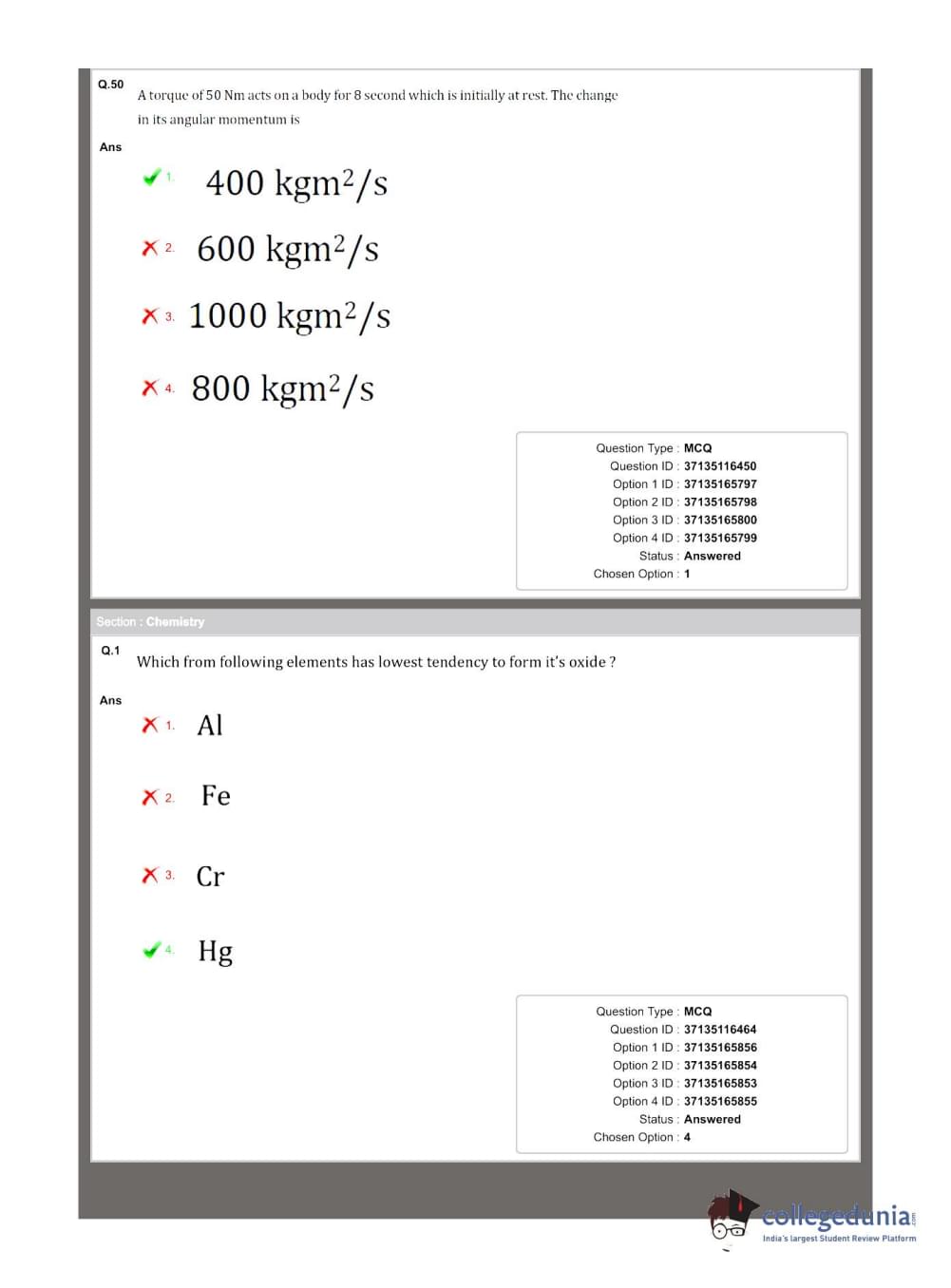 Collegedunia has provided MHT CET Previous Year Question paper pdf with answer key in the links given below: