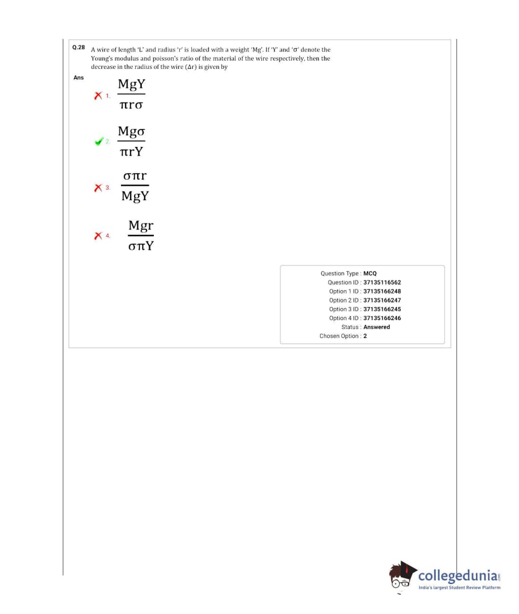 MHT CET 2020 PCM Question Paper with Answer Key PDFs -Shift 2